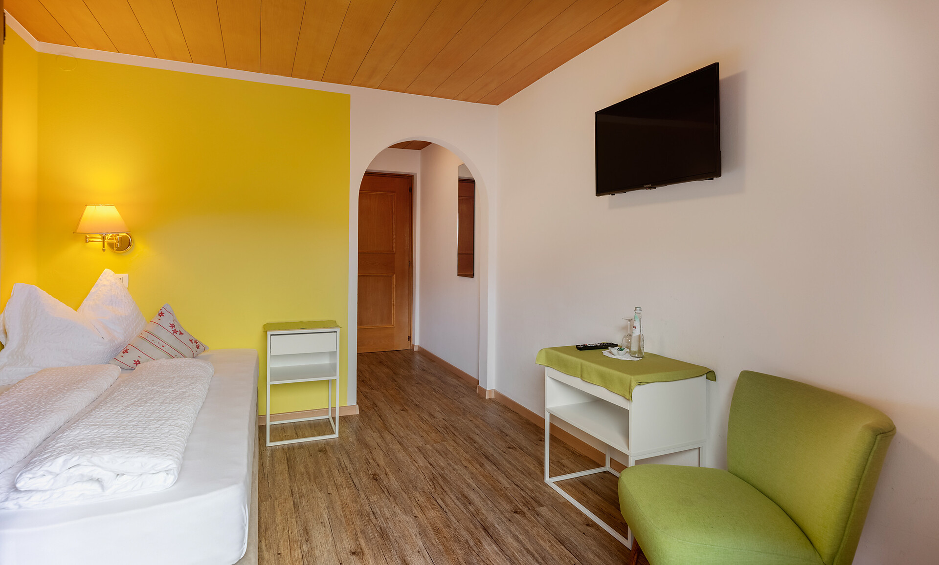 Single room, Single bed, Extra bed, Cot, Balcony, Non-smoking room, Shower / Bath tub, Separate WC, Hair dryer, TV, Satellite/Cable, WLAN, Main building, Panoramic view, South view