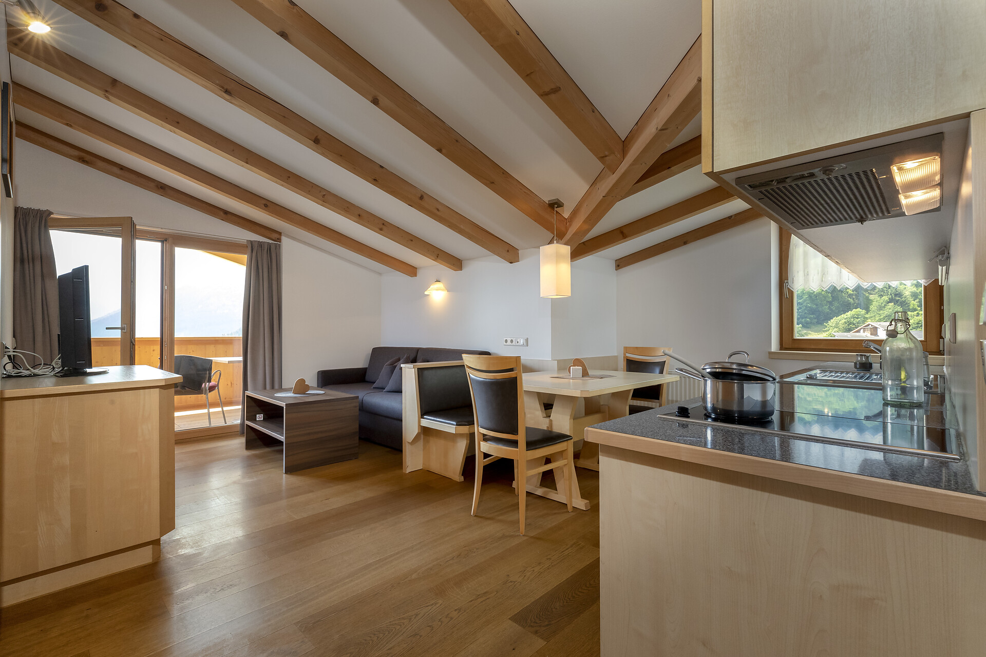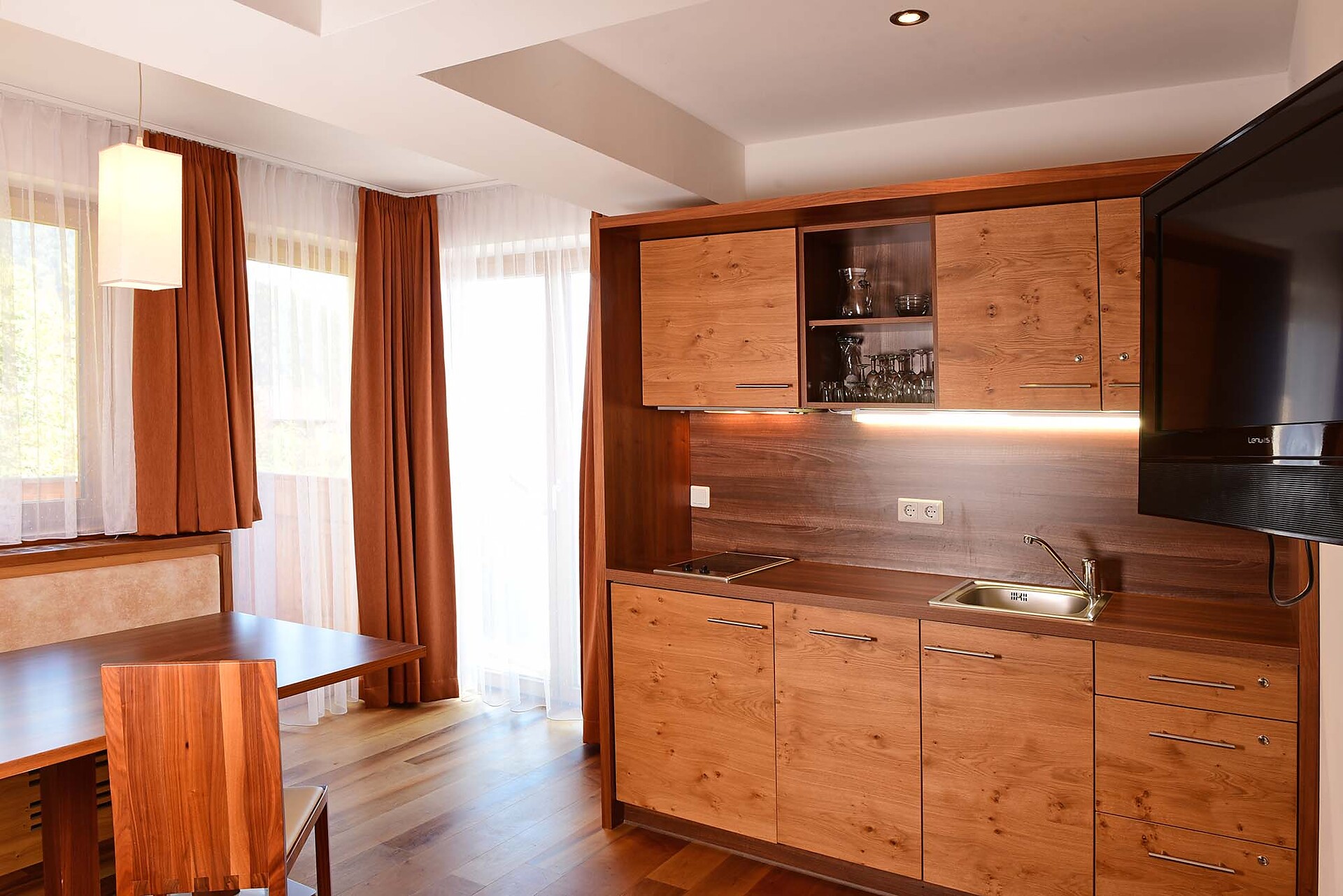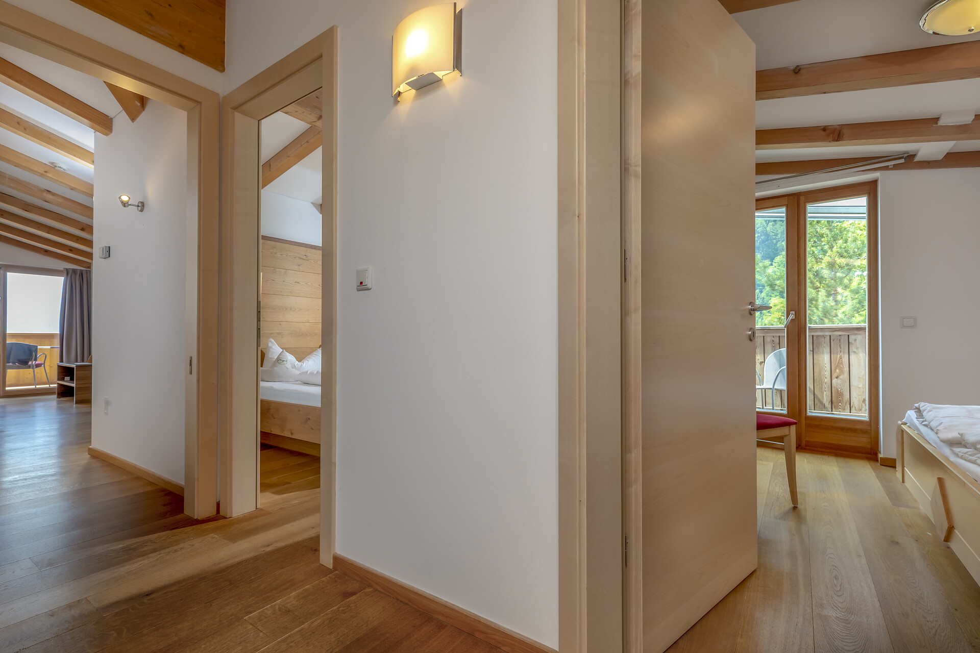 The Aparthotel Das Moriggl offers 3 rooms for people with mobility problems. The rooms are very spacious and accessible via a lift (130x93 cm). The hotel's basic facilities are easily accessible; the sauna, solarium and terrace are accessible with assistance. There is an underground car park from which you can reach the different floors of the hotel by lift.