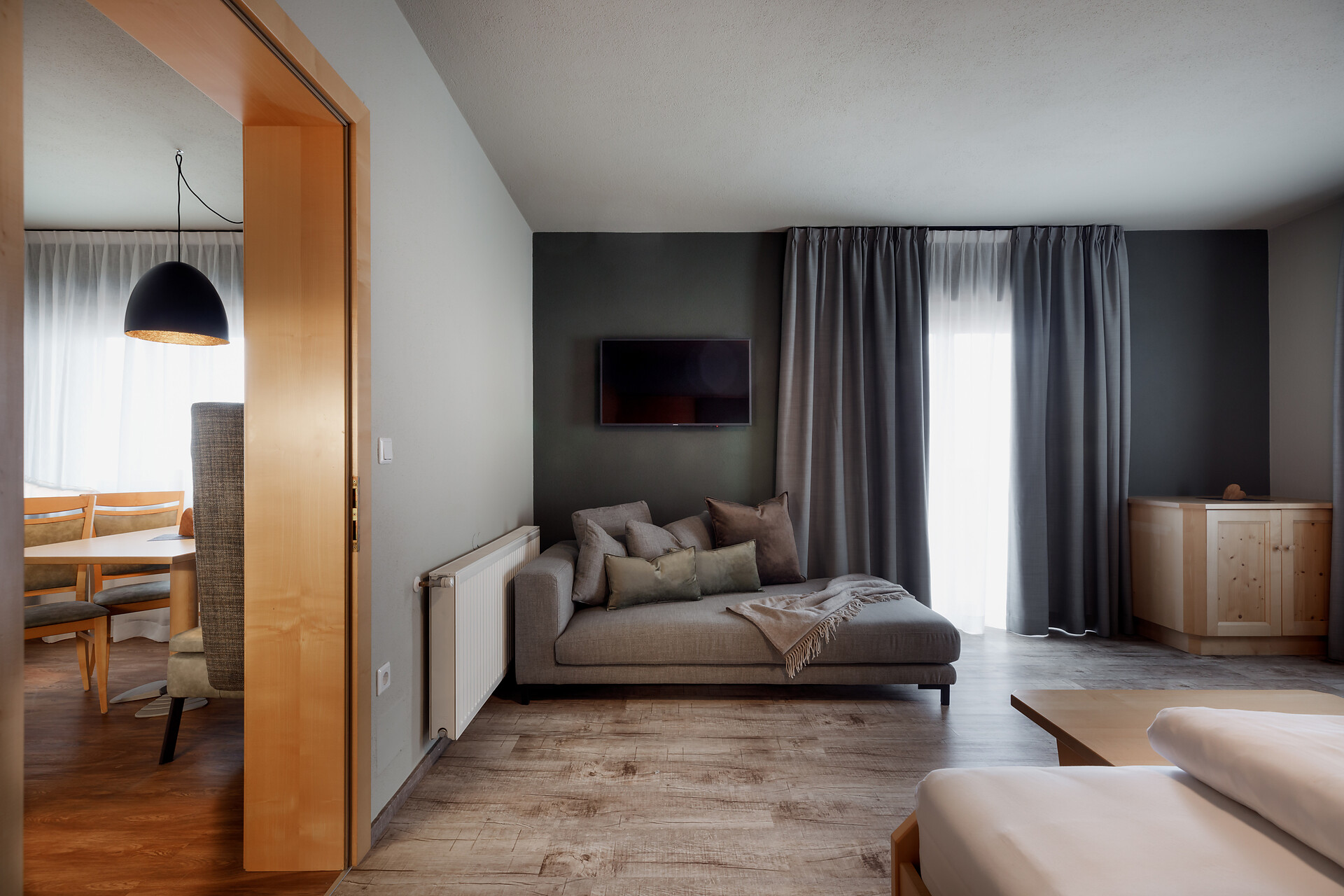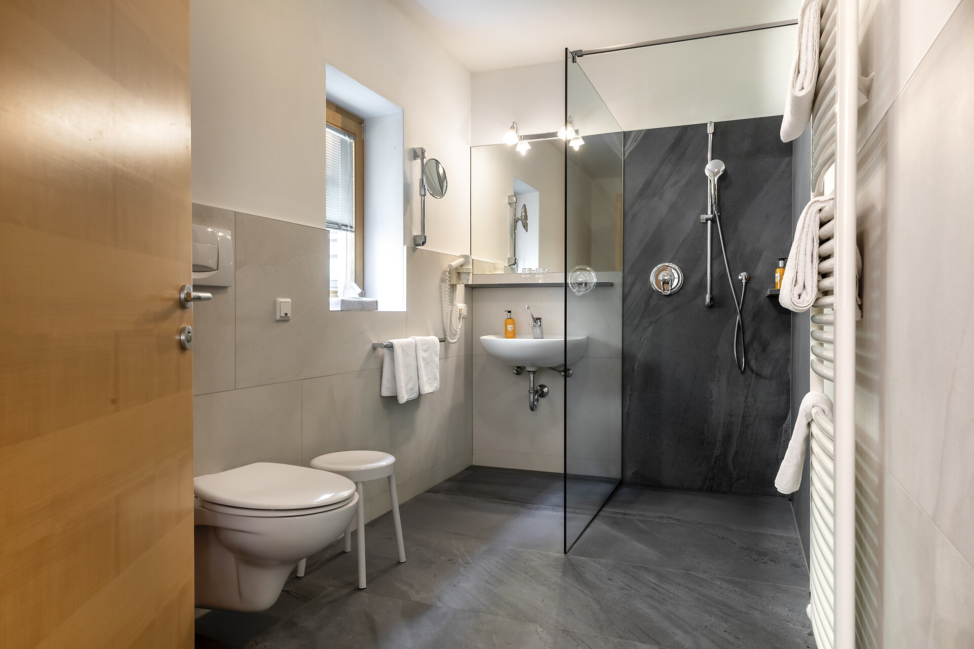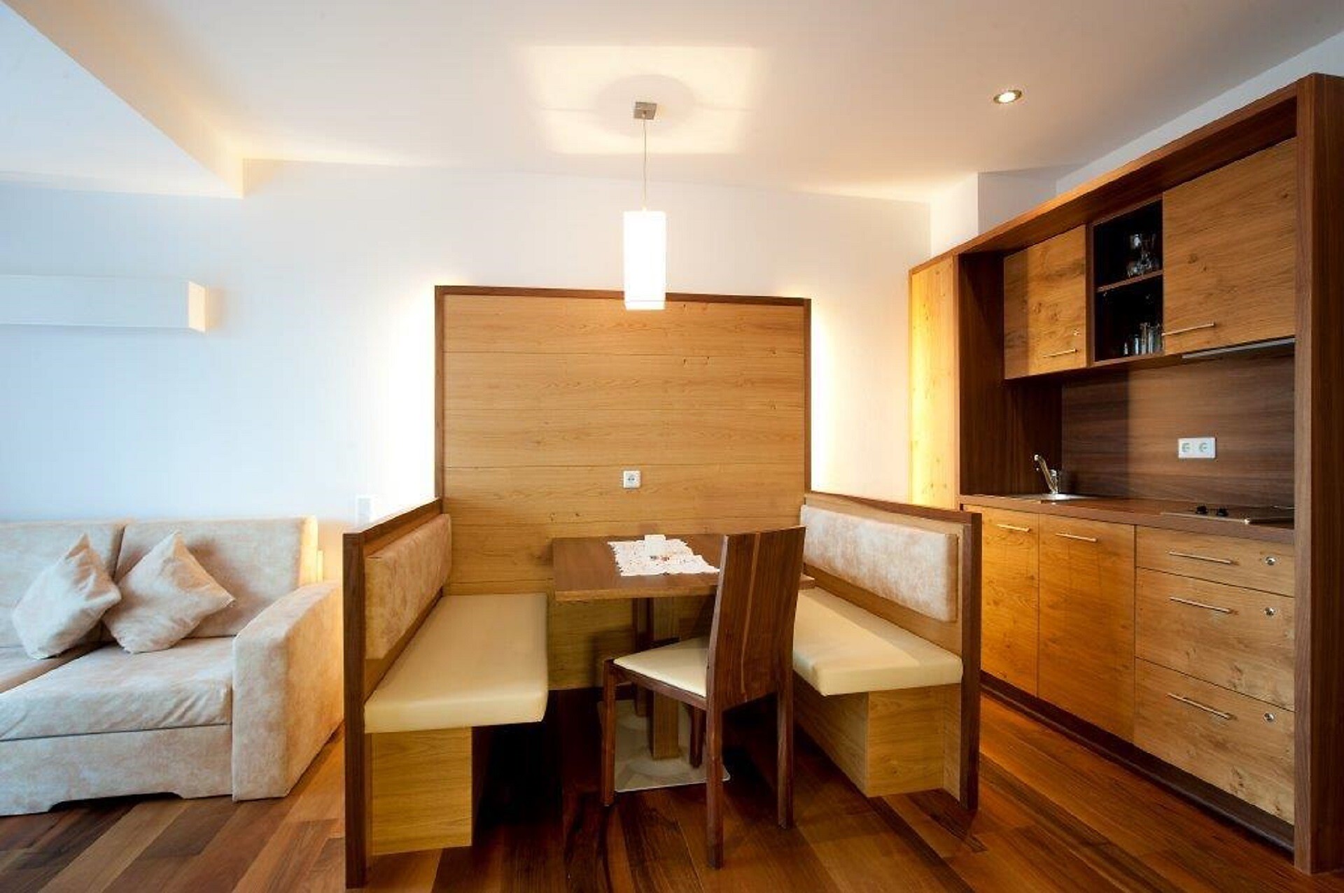 The Aparthotel Das Moriggl offers 3 rooms for people with mobility problems. The rooms are very spacious and accessible via a lift (130x93 cm). The hotel's basic facilities are easily accessible; the sauna, solarium and terrace are accessible with assistance. There is an underground car park from which you can reach the different floors of the hotel by lift.