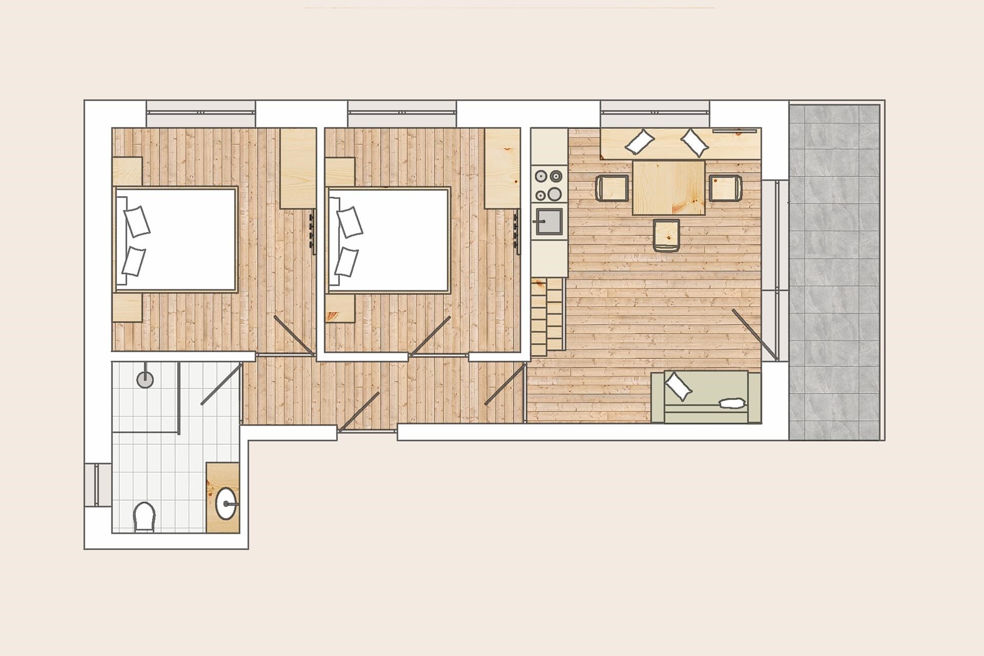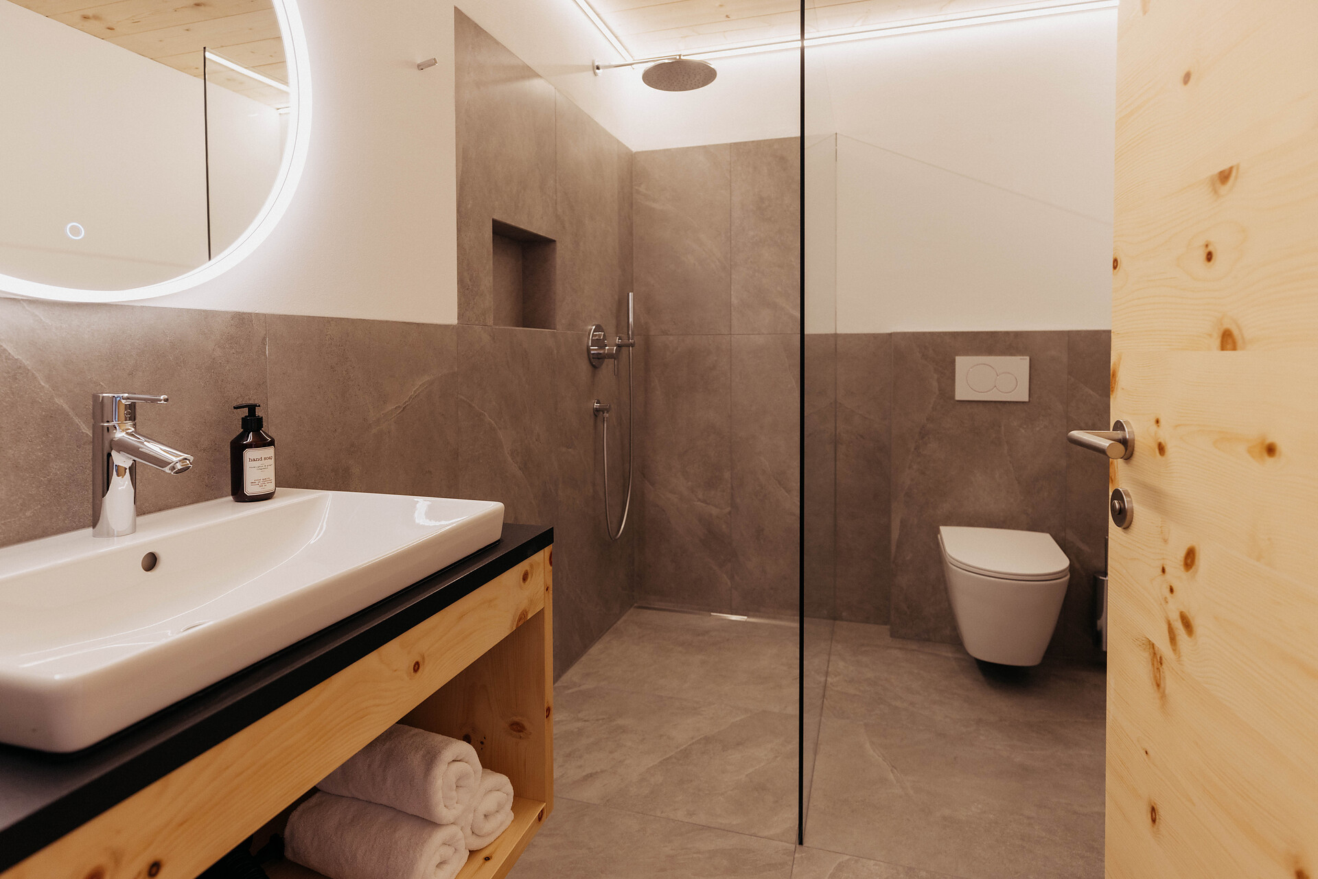 Plamatun is an Alpine-Romanic place name and is said to mean 'alp of high-quality herbs'. This holiday flat offers an unobstructed view out of the valley, high above the meadows of the valley. The holiday flat is barrier-free and features two bedrooms, a large bathroom, a kitchen-living room and a terrace.