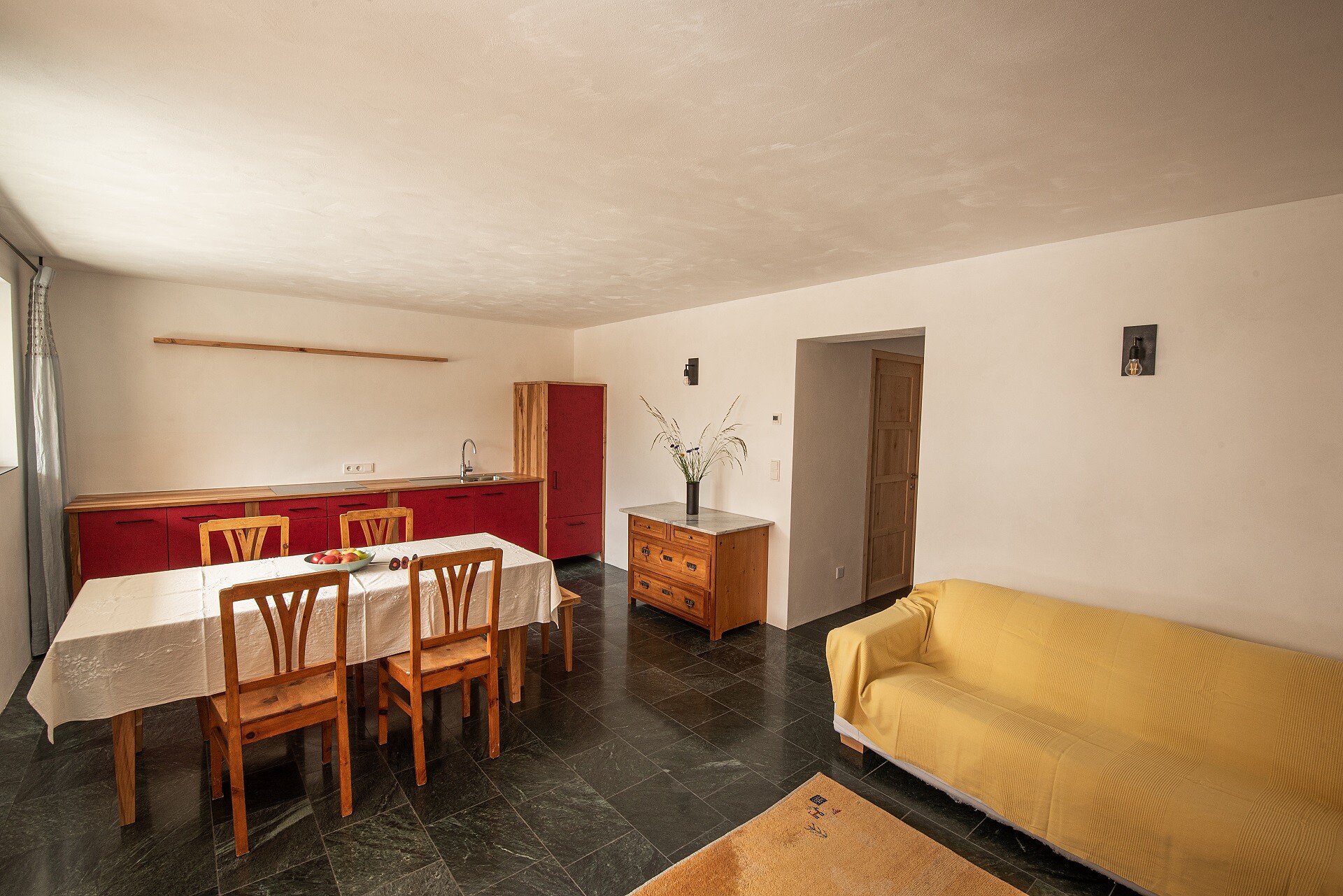 Ecologically, sustainably renovated 2-room flat (45m²), for 2-3 persons from 110€ per day, ground floor, open space in front of the flat. High-quality materials: solid wood furniture, solid wood and stone floors. WLAN, dishwasher, satellite TV. Car park available.