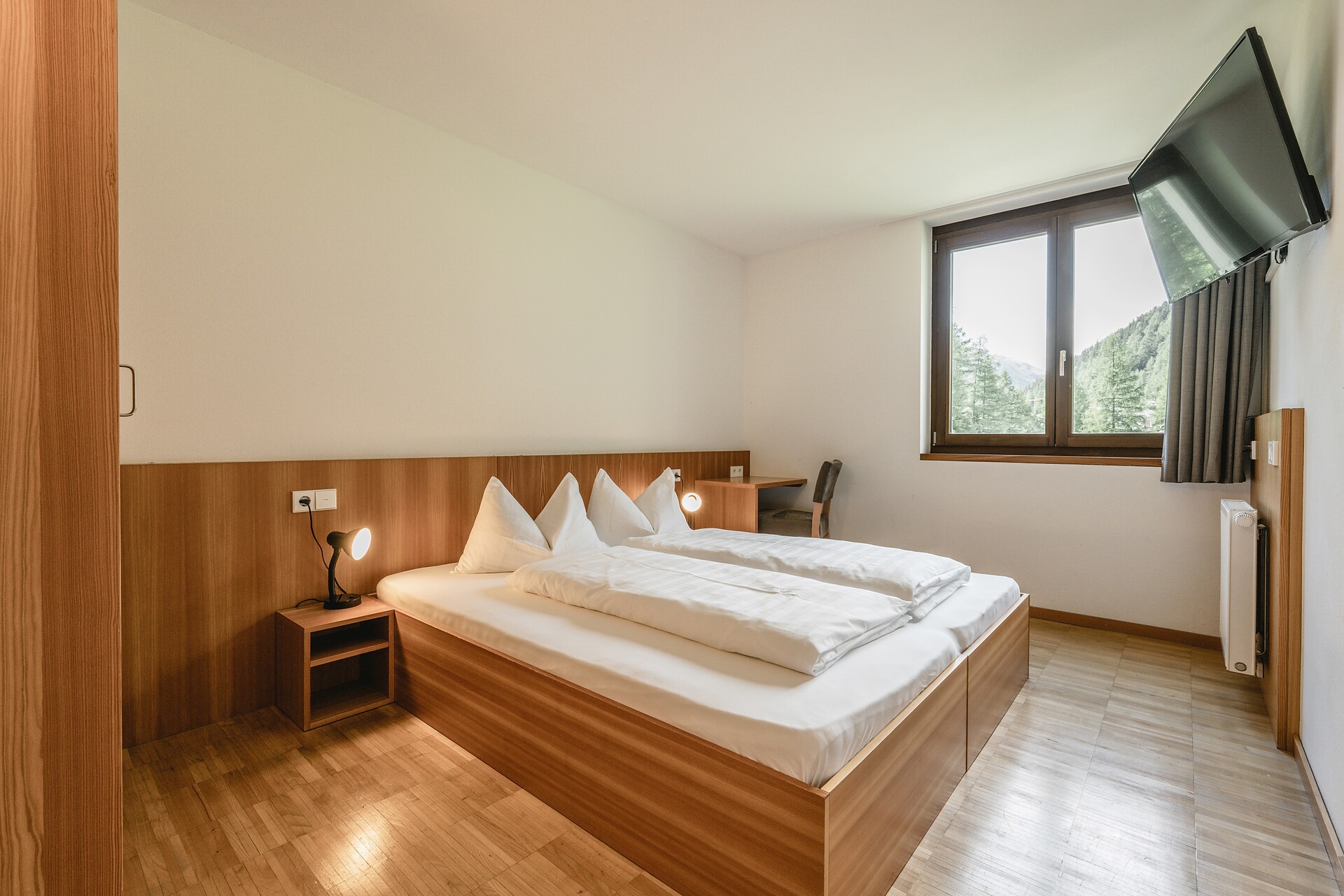 A cool room for a small budget! A comfortable room awaits you with solid wood