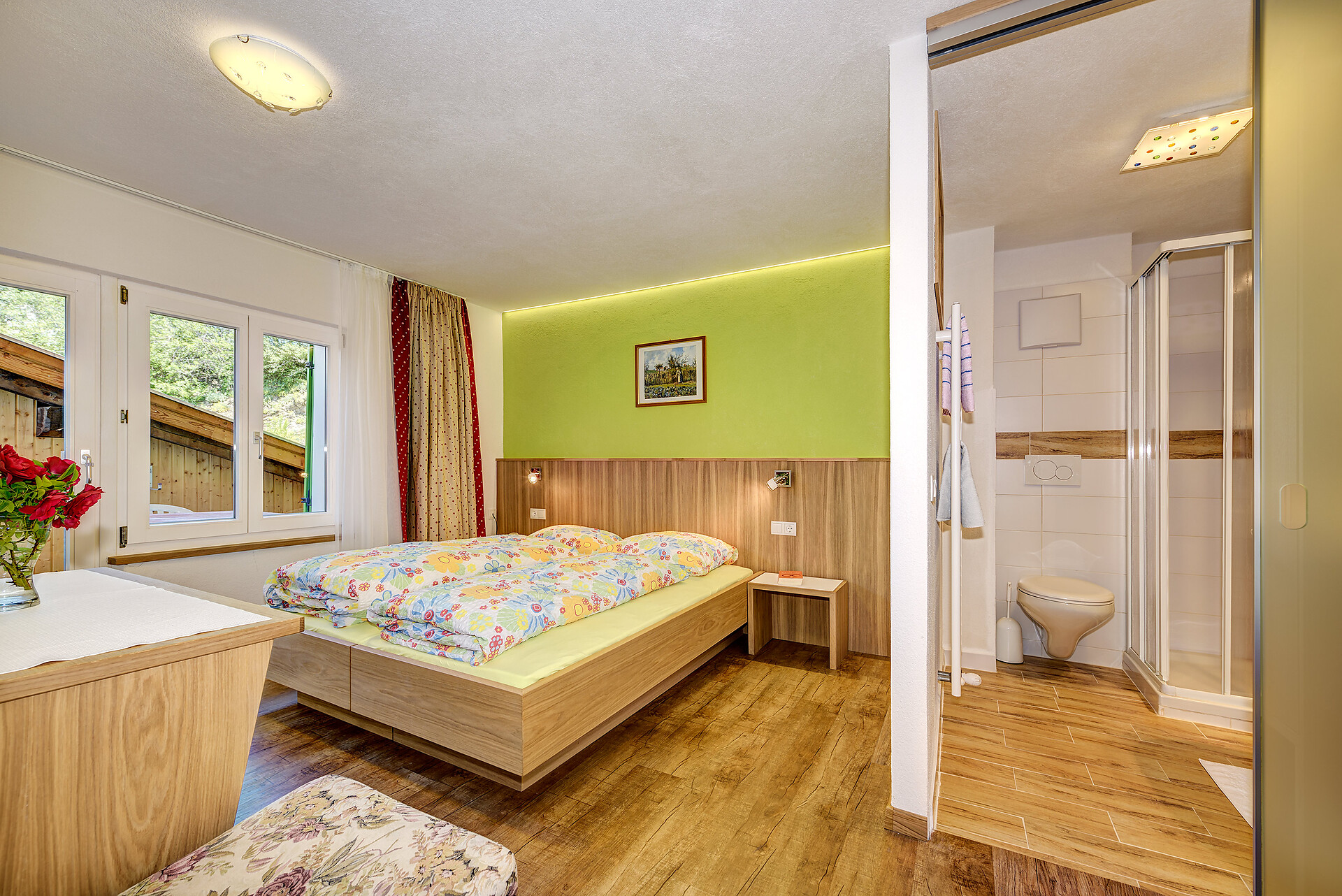 All the rooms are equipped with WC/shower, balcony or terrace, telephone, there is a charge for the use of sauna, double rooms towards the south (type A) are larger, non smoking rooms, sun terrace, very quiet and retsful atmosphere. Single rooms are not equipped with balcony or terrace.
