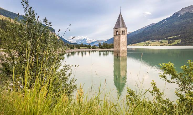 St. Veit church and from the mystical Tartscher Bühel hill to Malles/Mals with its five church towers, including the Carolingian