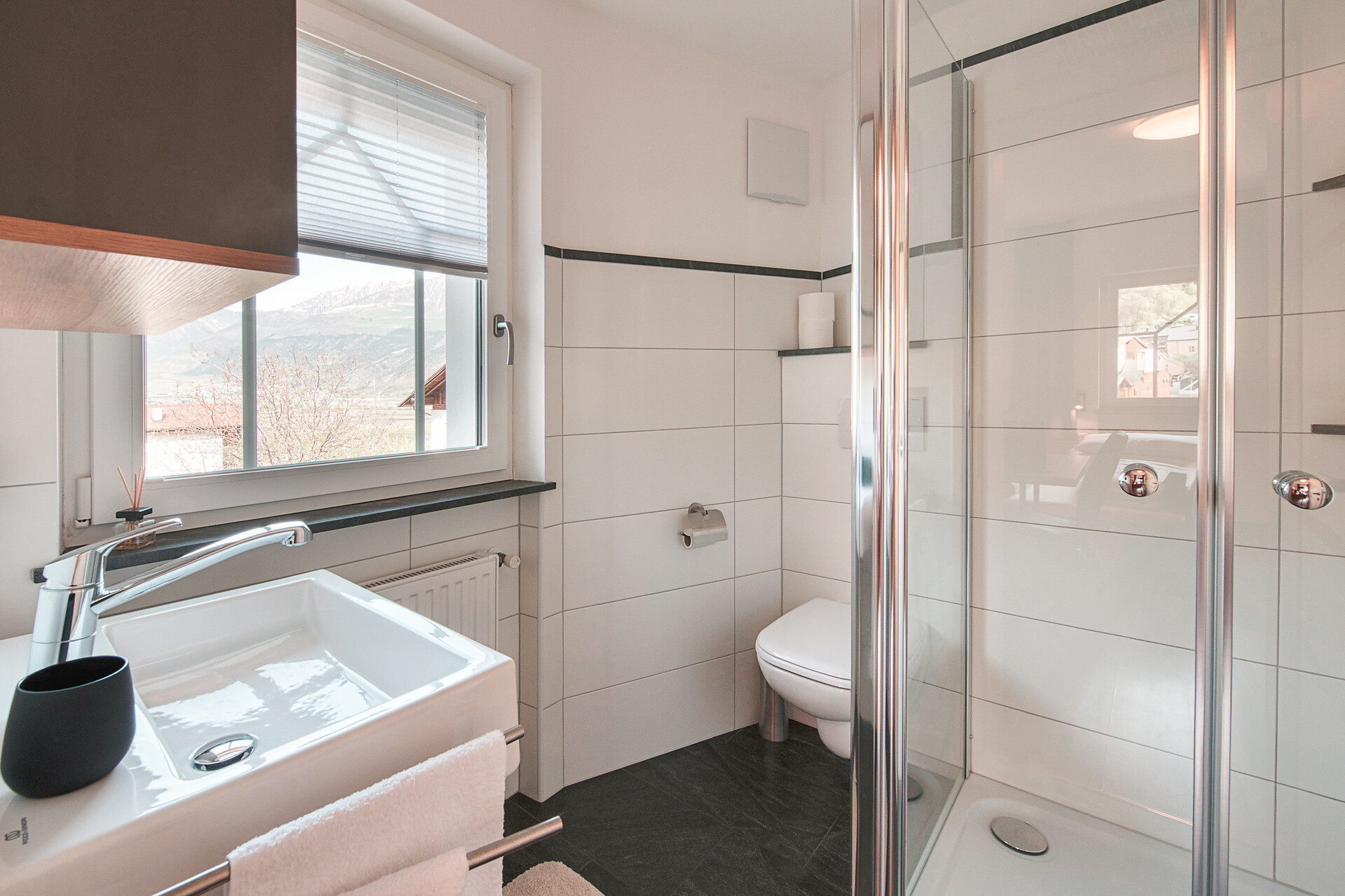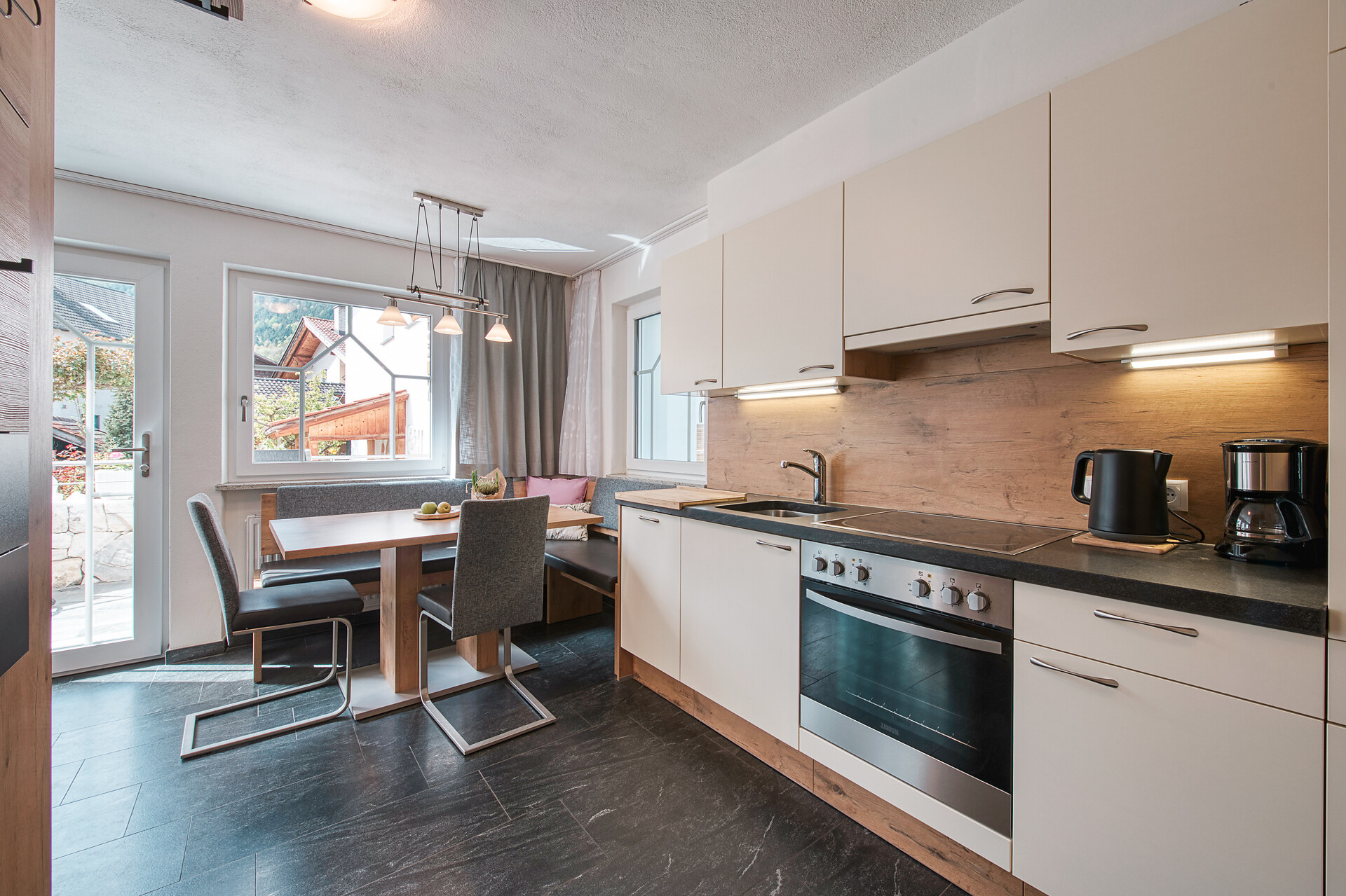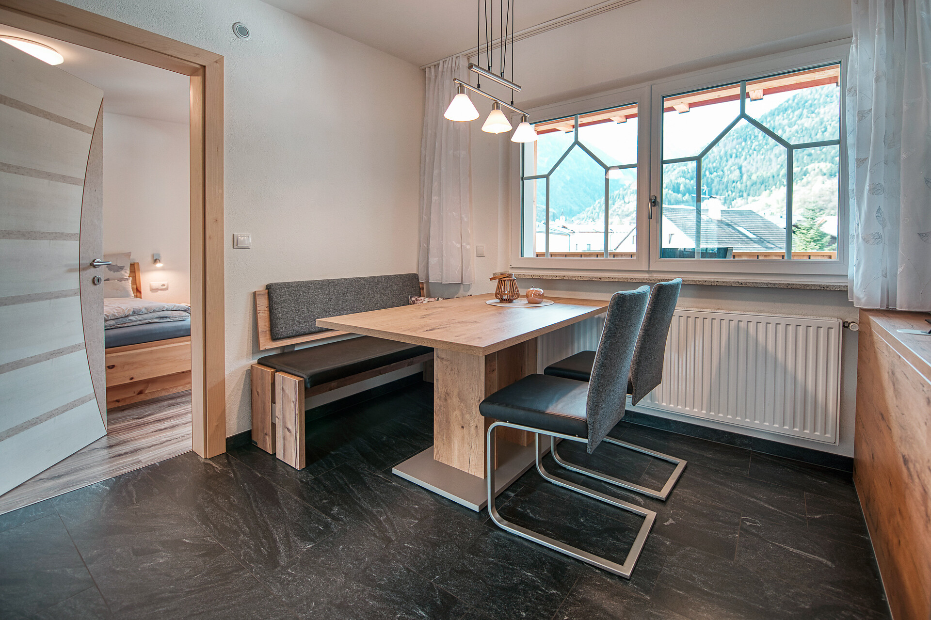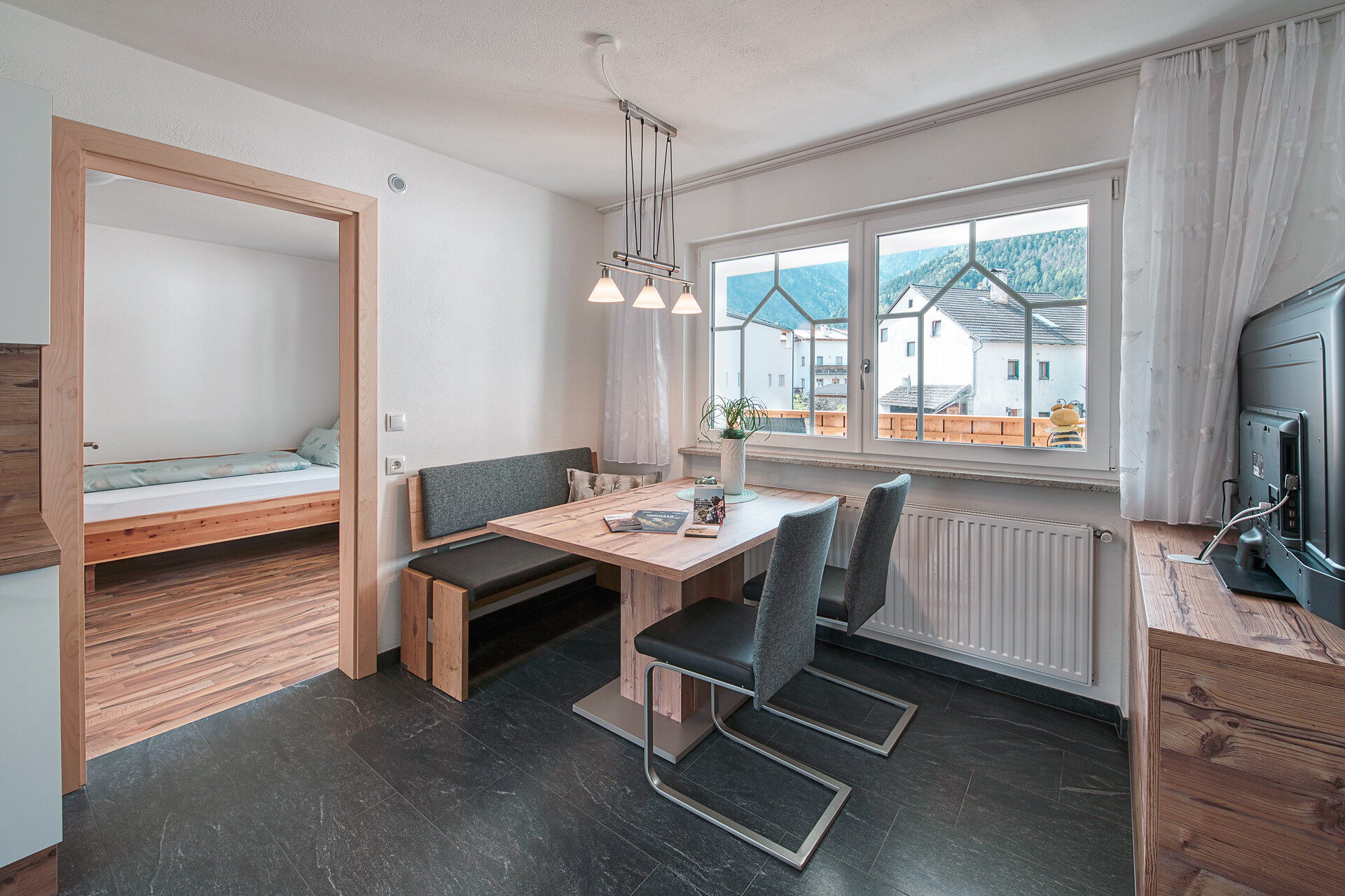 Our appartement Alpenrose offers space for 2-4 persons on about 55 m². It has a spacious kitchen with living area, 2 separate bedrooms, a bathroom and a balcony on the north and south side.