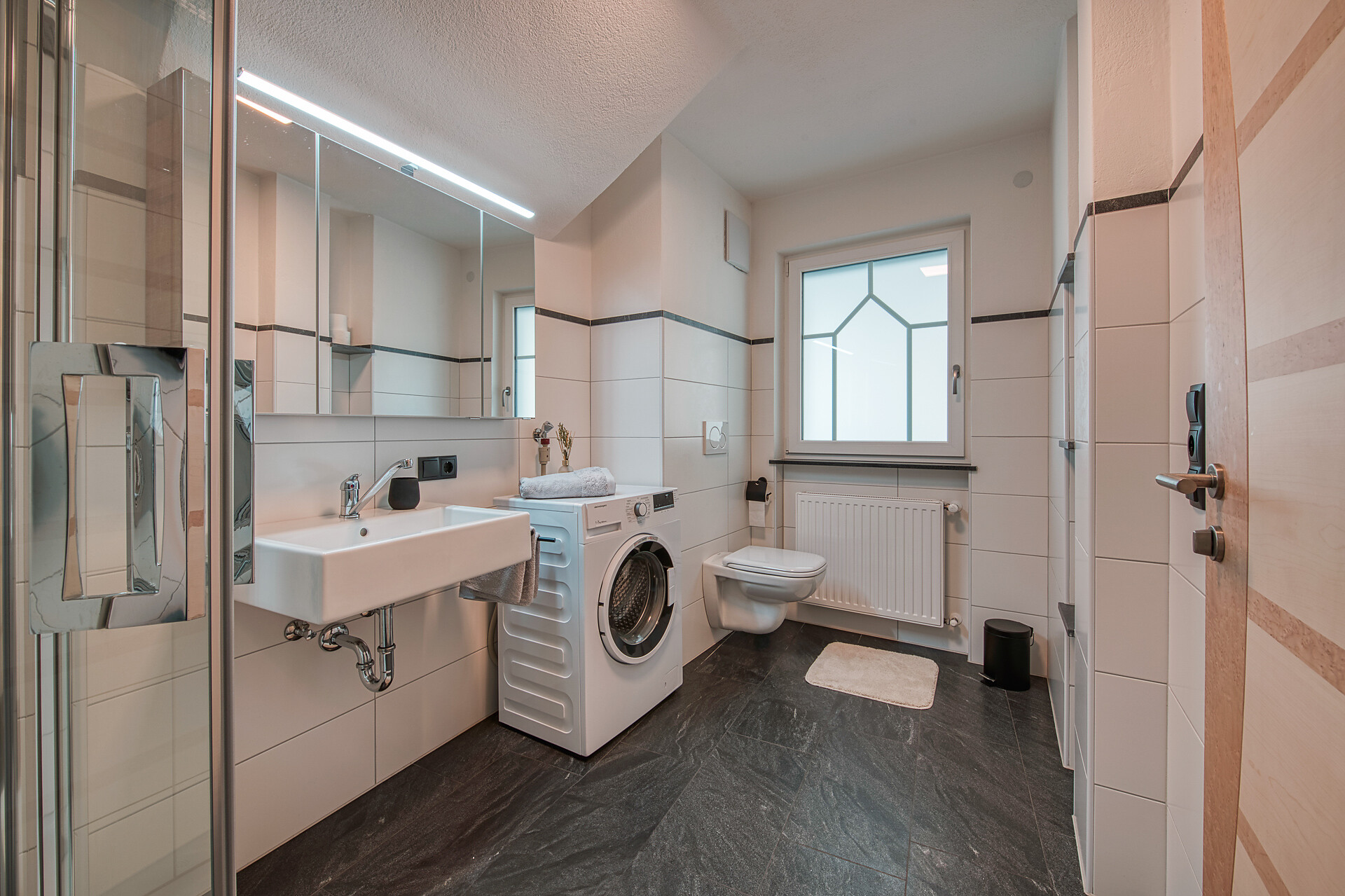 Double bed , Cot, Balcony, Tiled stove/Open fireplace, Bed linen provided, Non-smoking apartment, 2 or more bedrooms, Eat-in kitchen, Coffee machine, Dishwasher, Electric cooker, Cutlery provided, Hob, Shower/Bath tub, 2 or more bathrooms, Separate WC, Towels, Washing machine in the apartment, TV, Satellite/Cable, WLAN, Final cleaning included, Main building, Panoramic view