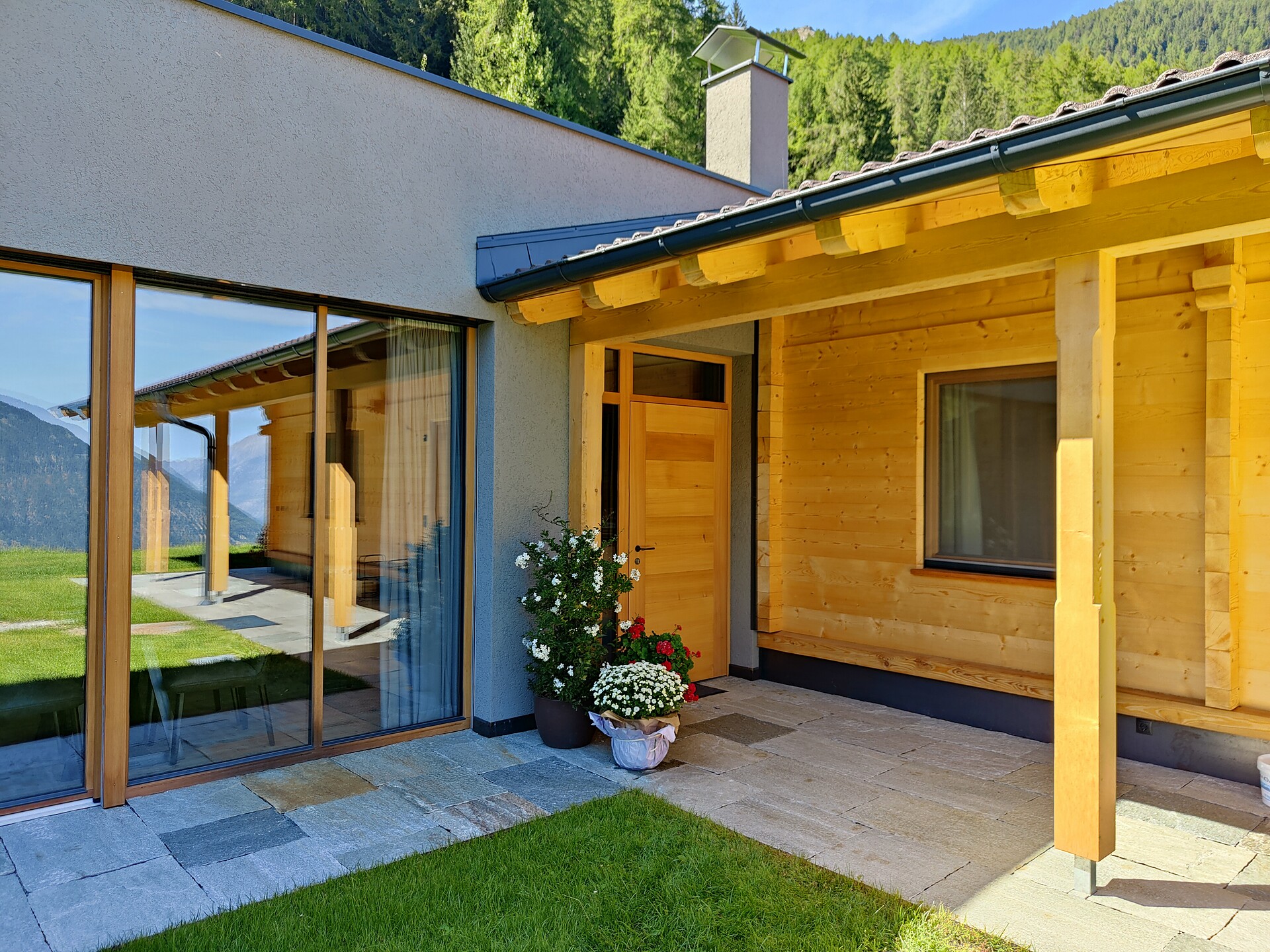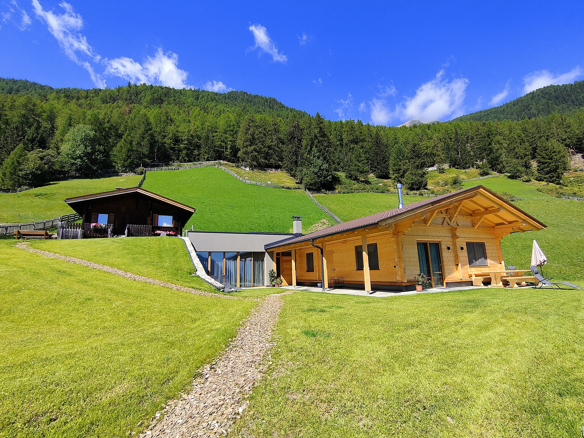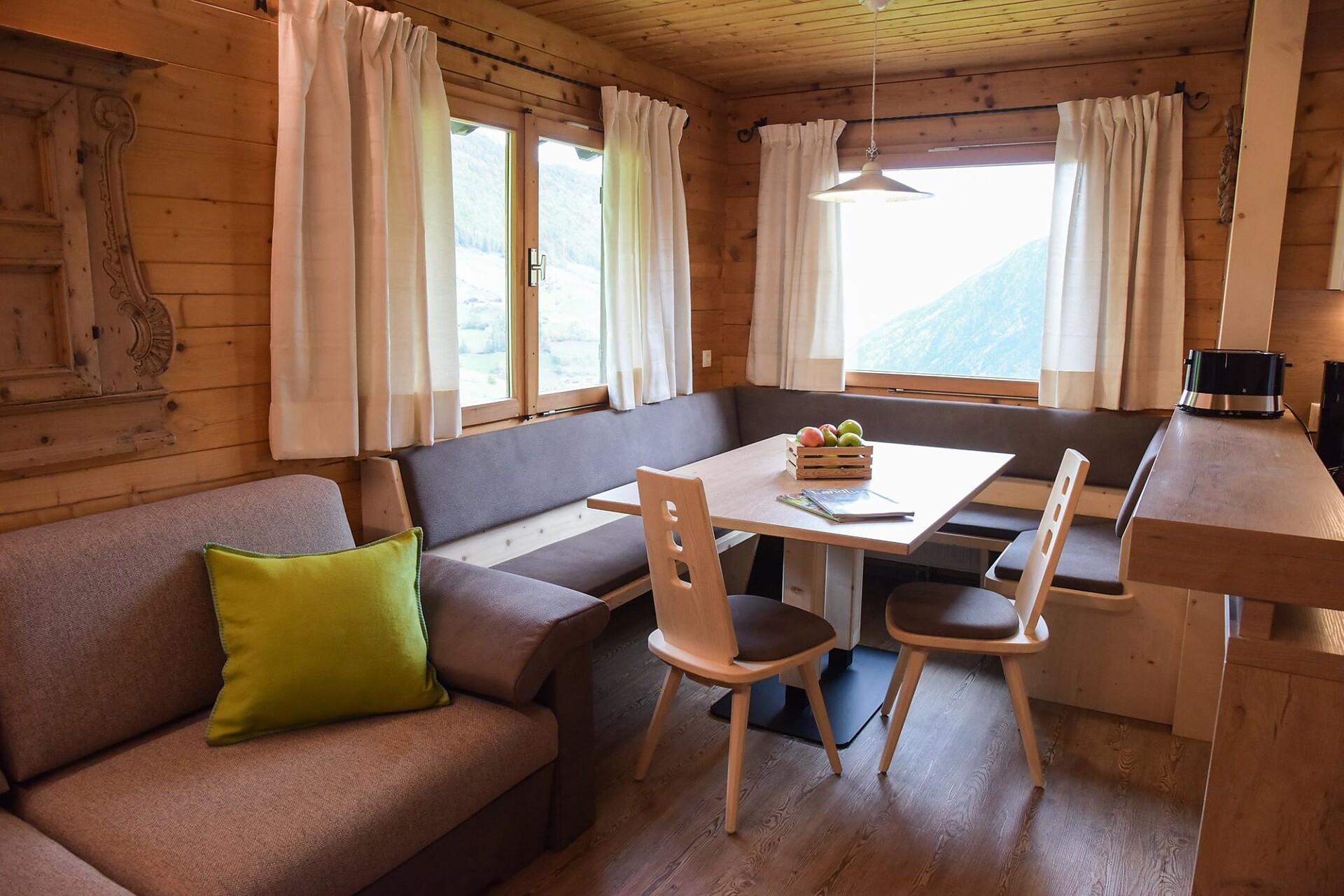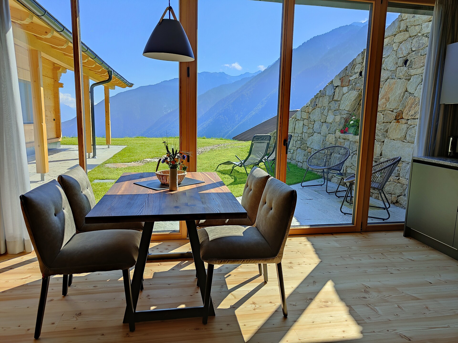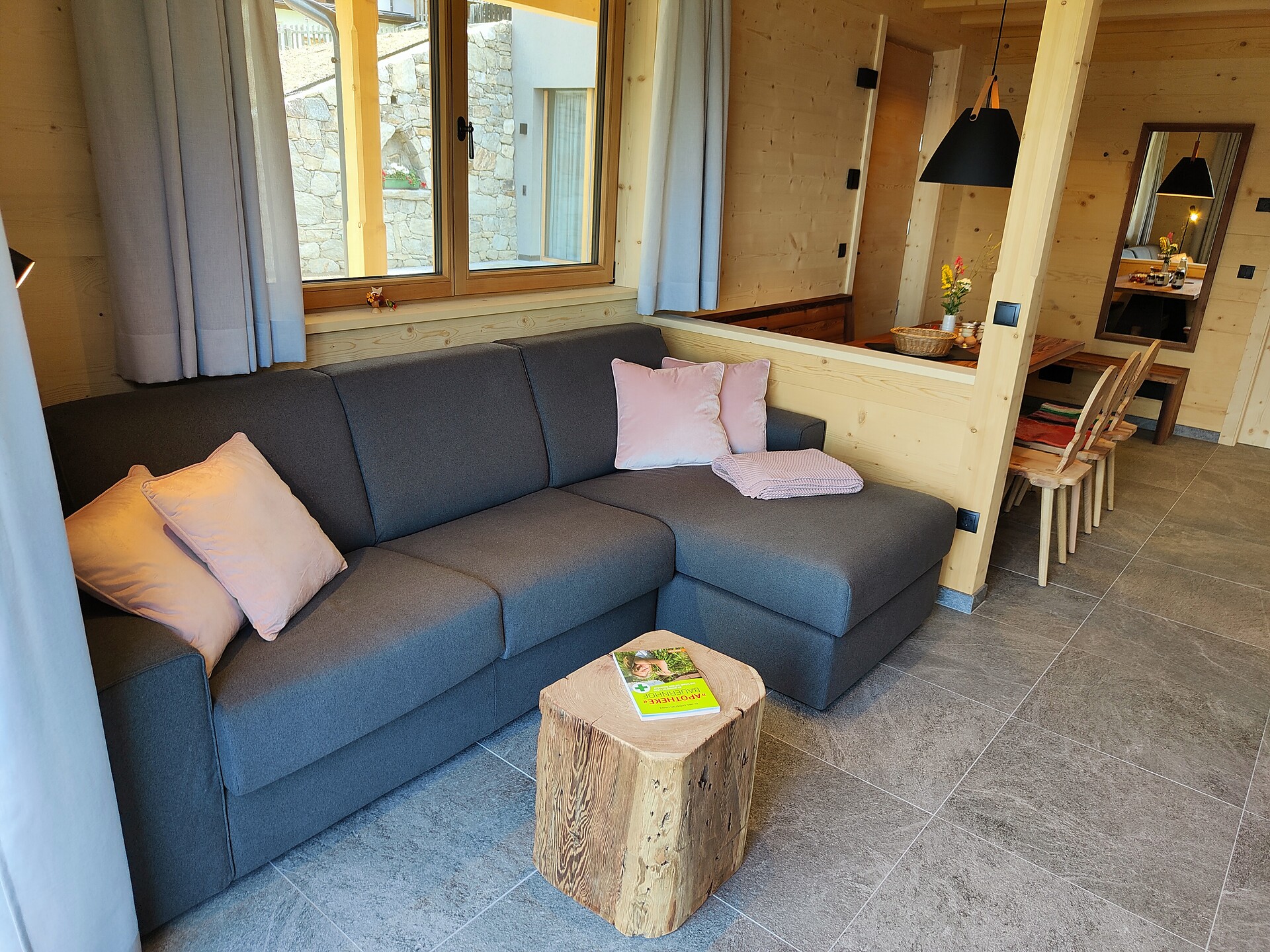 • Natural larch wood floor and furniture made of Martello stone pine in the sleeping area