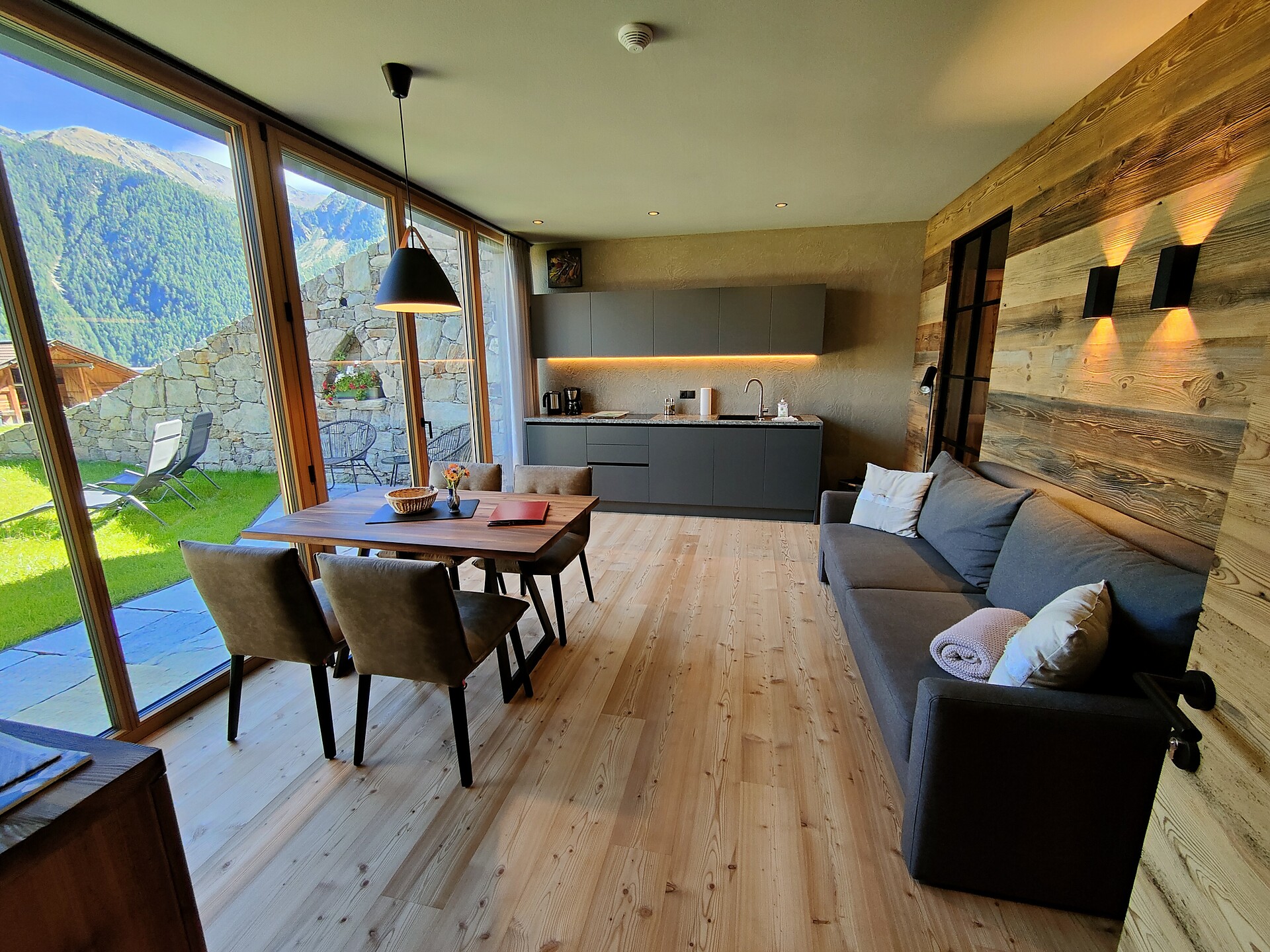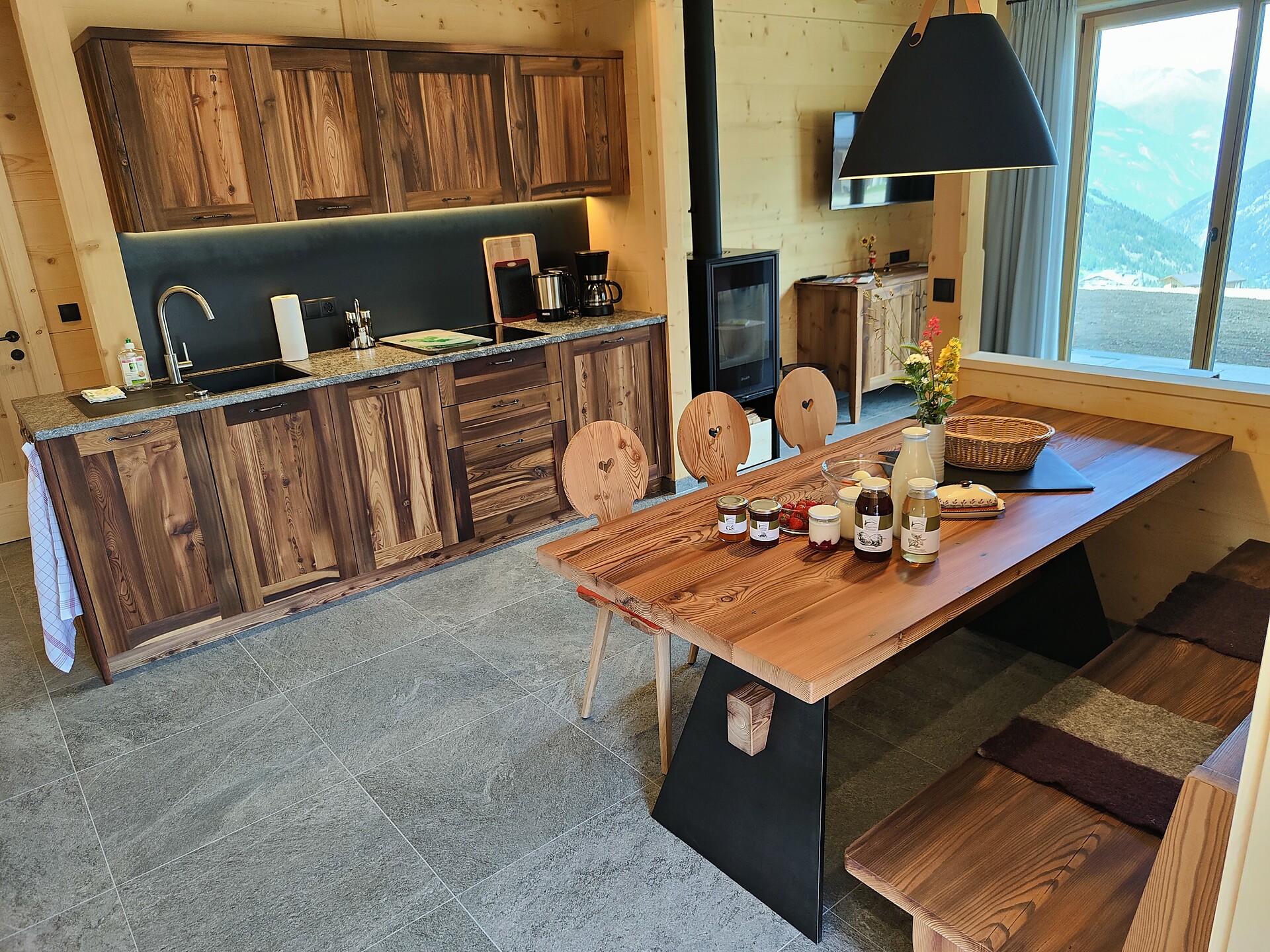 • Fully and modernly equipped kitchen made of reclaimed wood