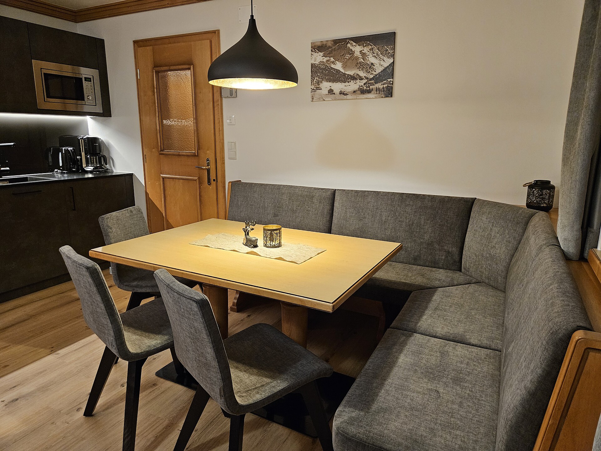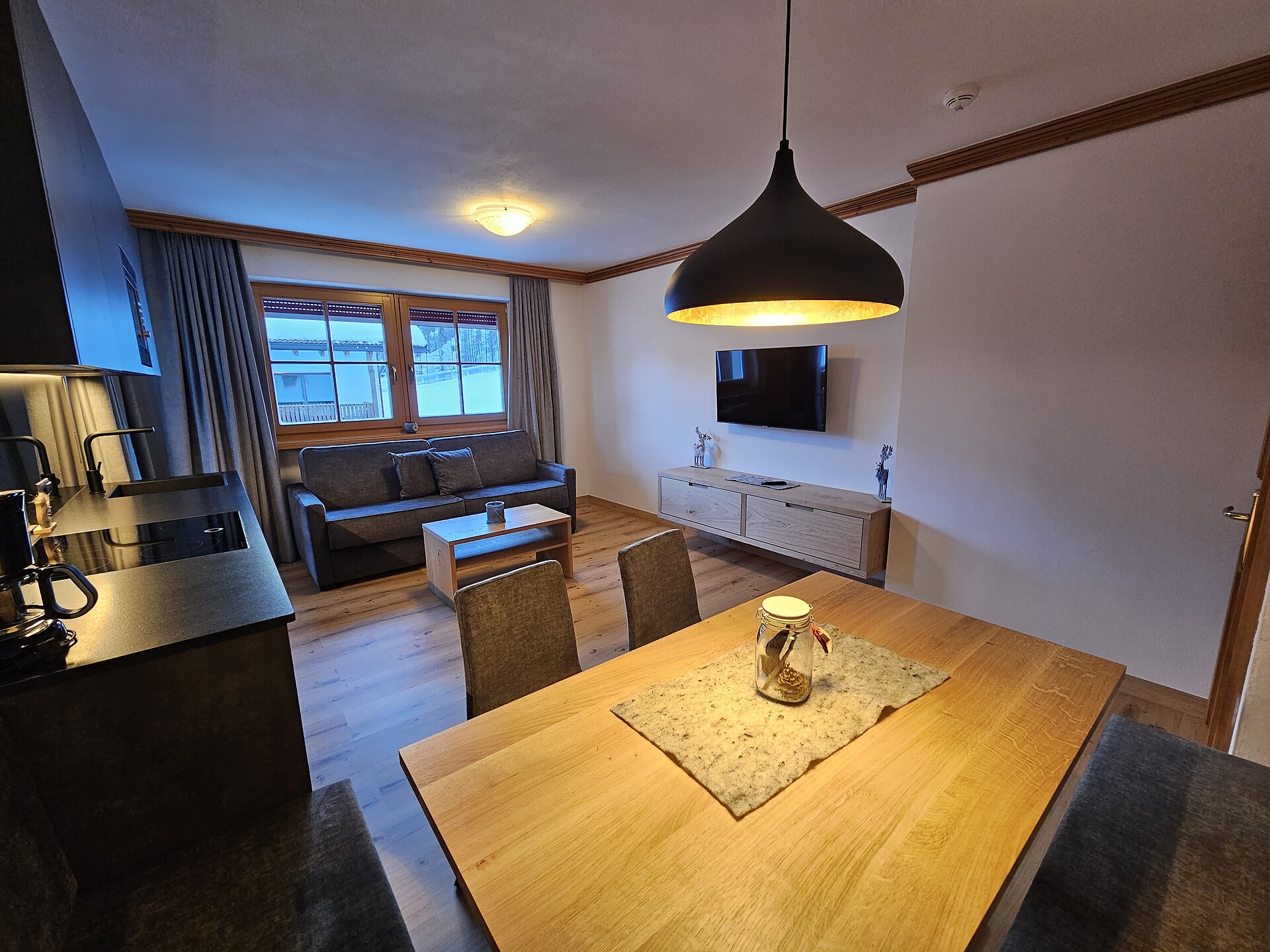 Double bed , Cot, Sofa bed, Double sofa bed, Balcony, Terrace, Bed linen provided, Safe, Non-smoking apartment, Eat-in kitchen, Coffee machine, Dishwasher, Electric cooker, Microwave, Cutlery provided, Hob, Shower/Bath tub, Hair dryer, Towels, Bathtub, Apartment with sauna, TV, Satellite/Cable, WLAN, Internet access, Main building, Panoramic view