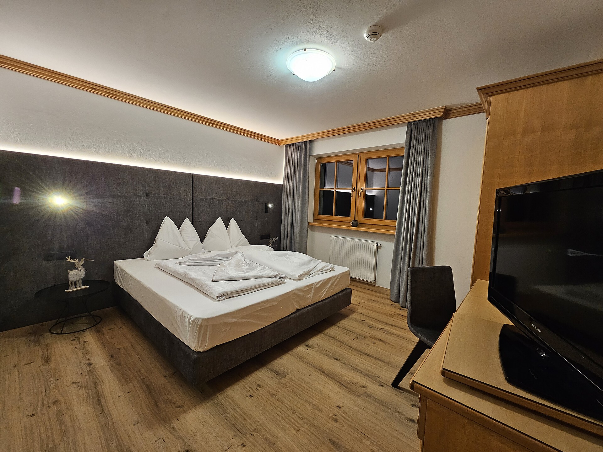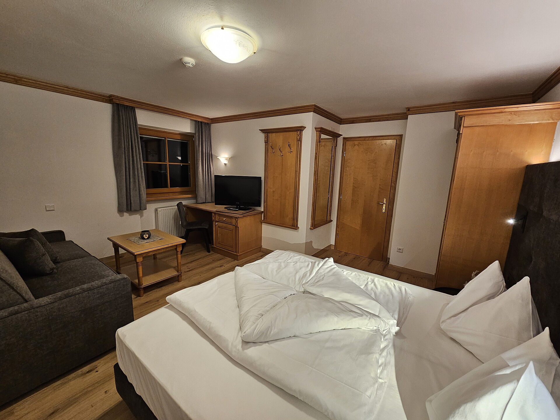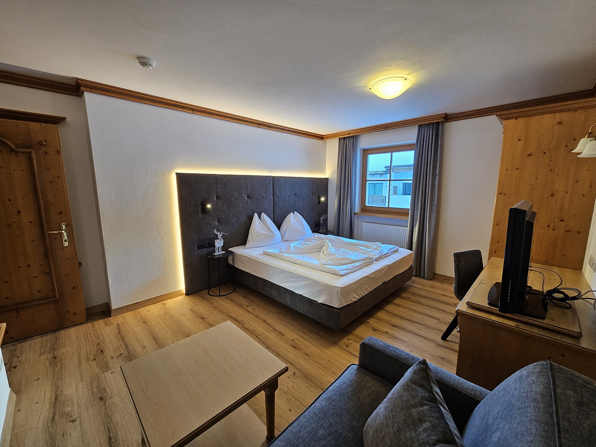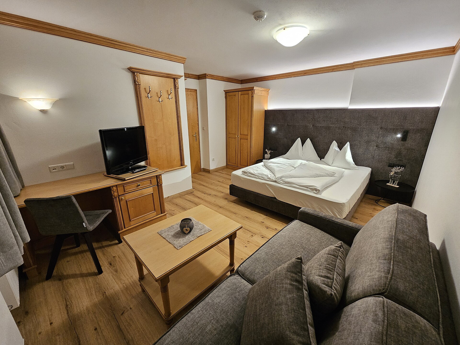 Double bed , Cot, Double sofa bed, Balcony, Terrace, Bed linen provided, Safe, Non-smoking apartment, Eat-in kitchen, Coffee machine, Dishwasher, Electric cooker, Microwave, Cutlery provided, Hob, Shower/Bath tub, Hair dryer, Towels, Bathtub, Apartment with sauna, TV, Satellite/Cable, WLAN, Internet access, Main building, Panoramic view