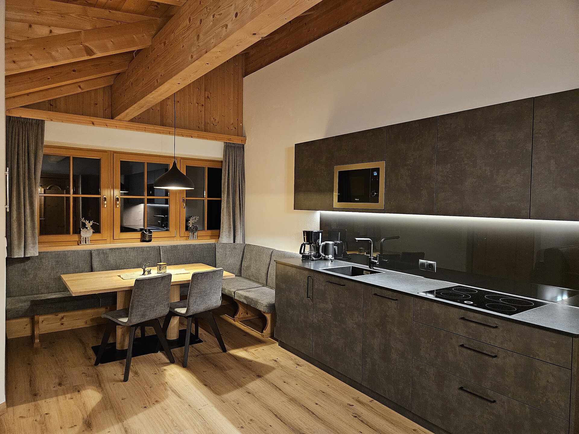Double bed , Cot, Double sofa bed, Balcony, Terrace, Bed linen provided, Safe, Non-smoking apartment, Eat-in kitchen, Coffee machine, Dishwasher, Electric cooker, Microwave, Cutlery provided, Hob, Shower/Bath tub, Separate WC, Hair dryer, Towels, Bathtub, Apartment with sauna, TV, Satellite/Cable, WLAN, Internet access, Main building, Panoramic view