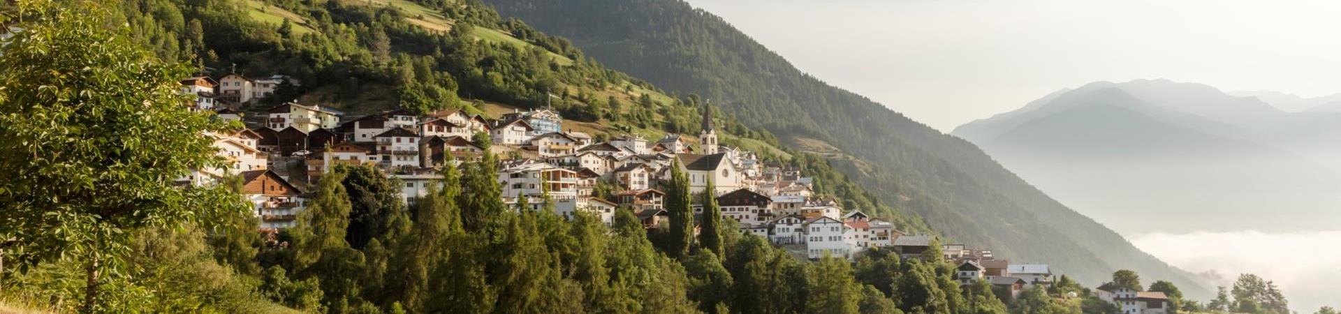 Ortles holiday region. Nestled on the mountainside, the architecture of the village is typical of the Upper Venosta Valley’s Romanesque scattered villages. The terraced settlement was built in the 15th century by miners, who moved to Ortles in search of iron ore.