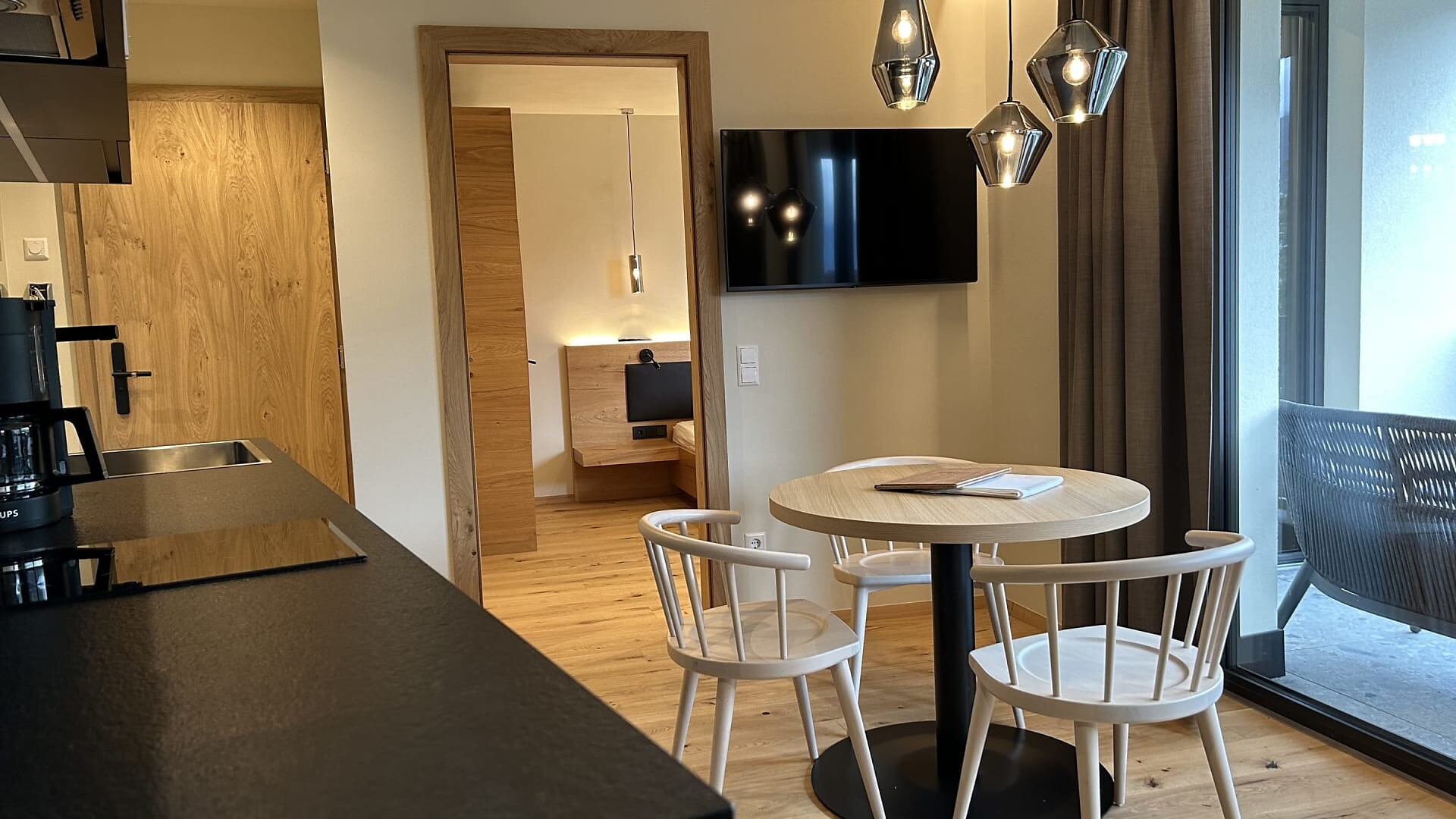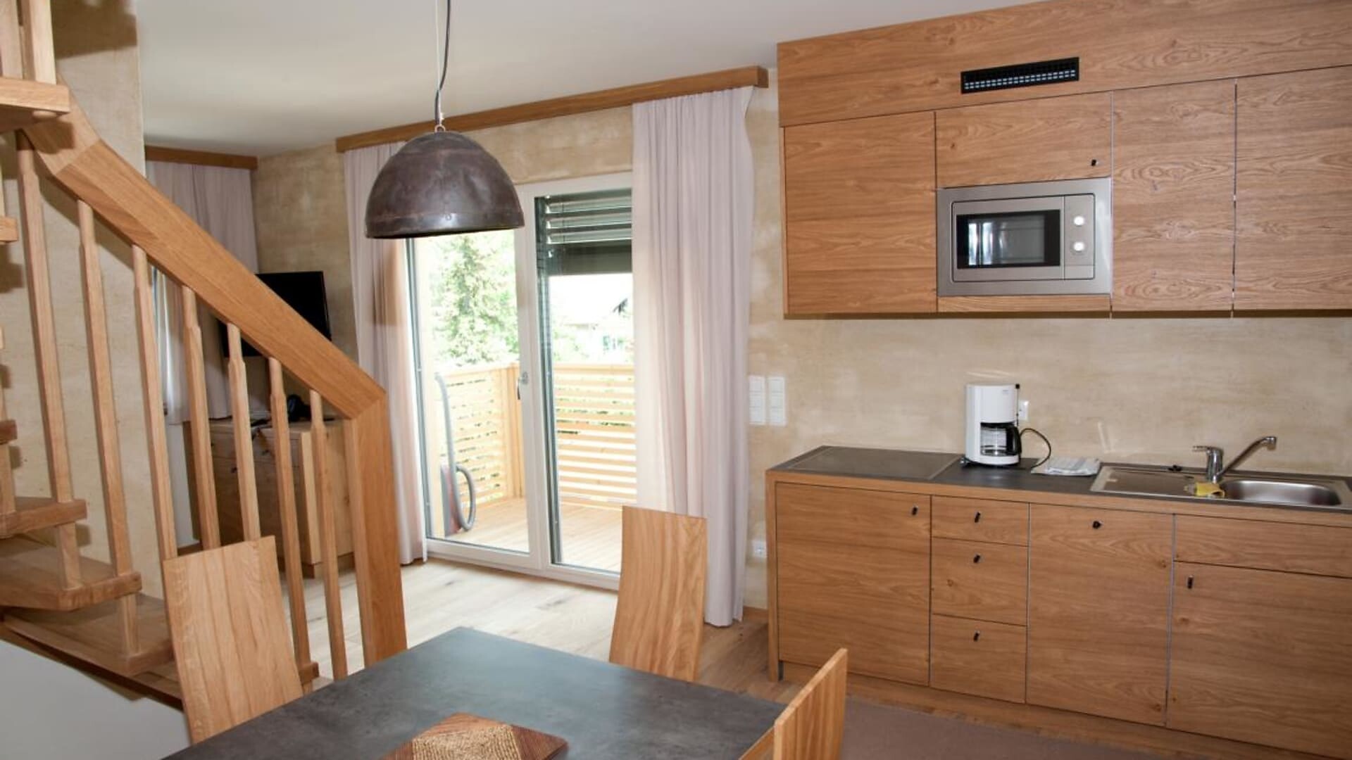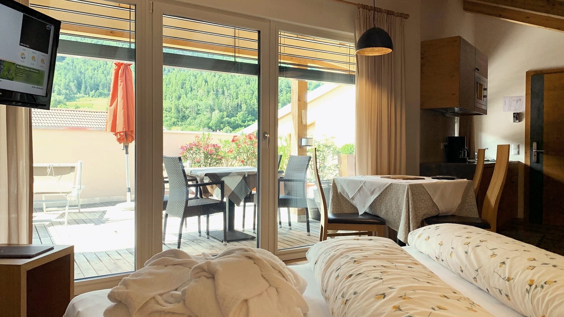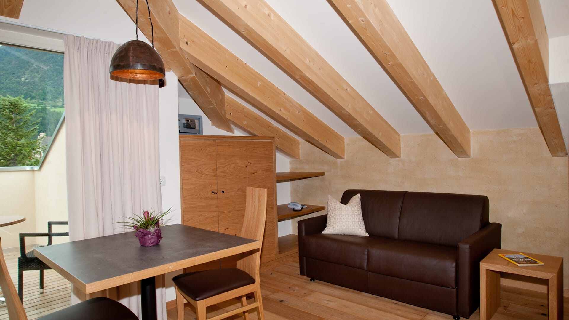 Enjoy the quiet panorama studio with 45 sqm sun terrace and exclusive infrared sauna on the 3rd floor.