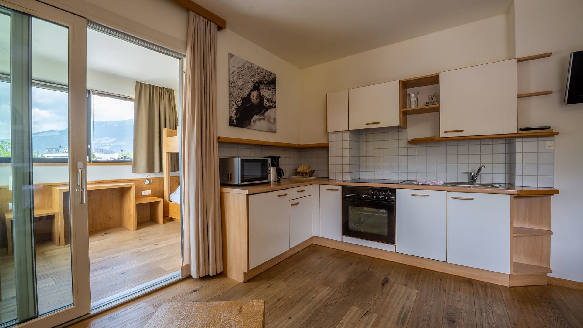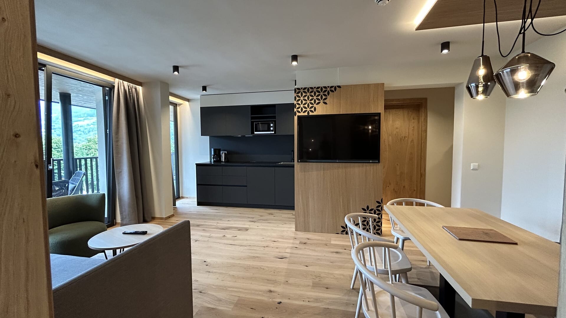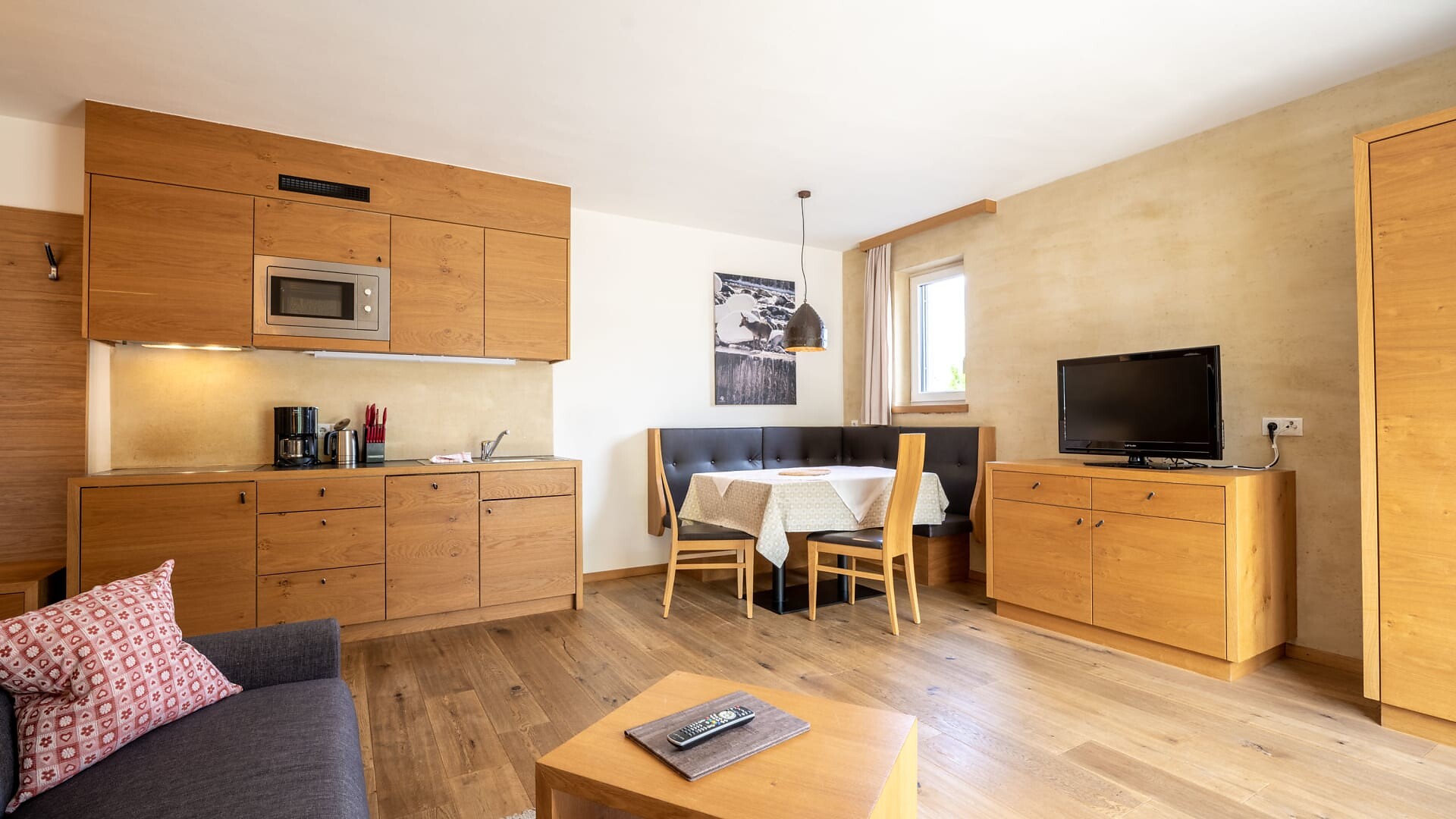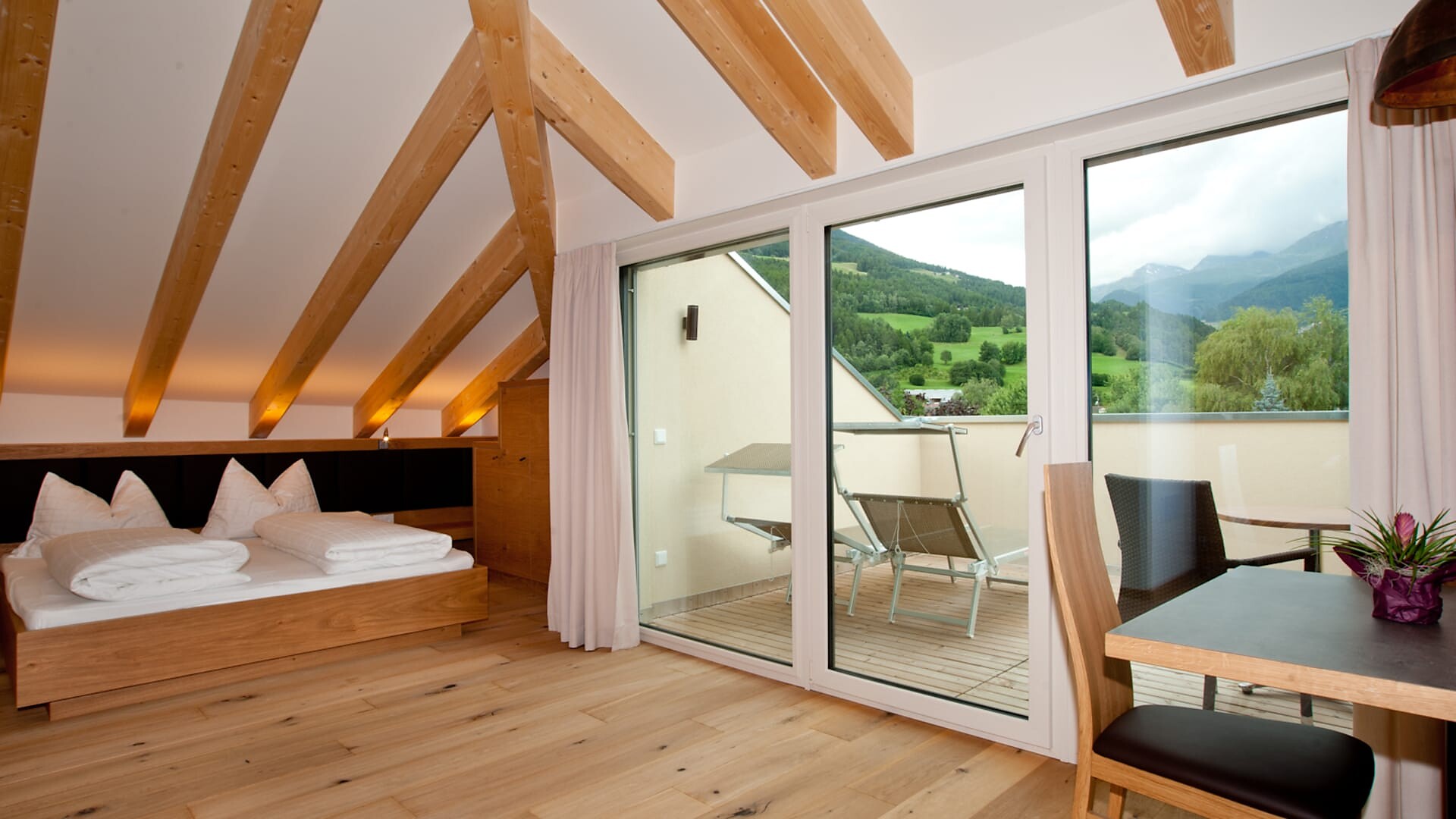 Enjoy the quiet panorama studio with 45 sqm sun terrace and exclusive infrared sauna on the 3rd floor.