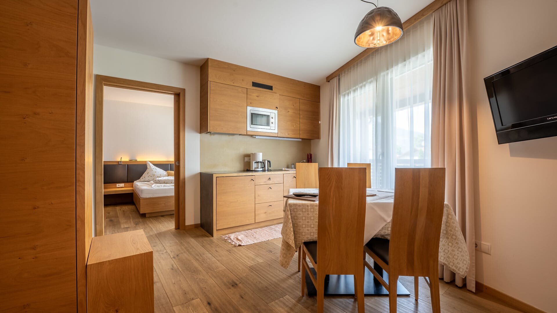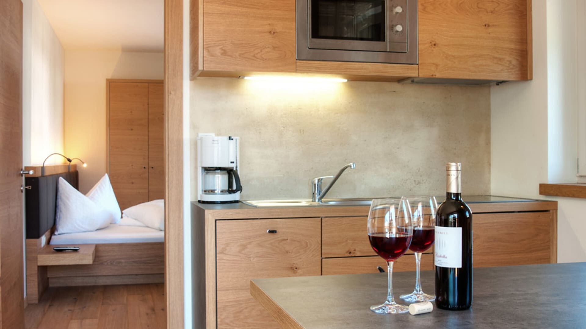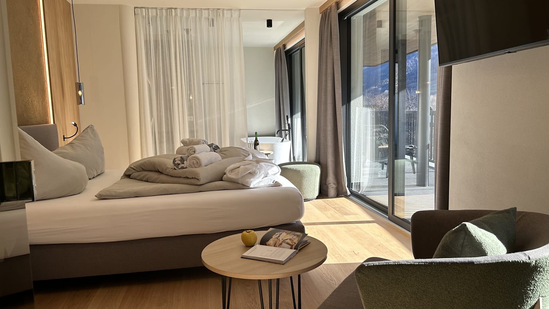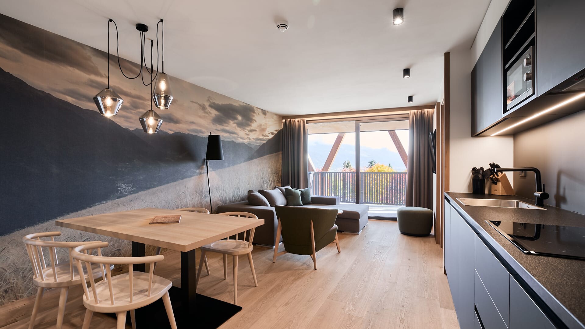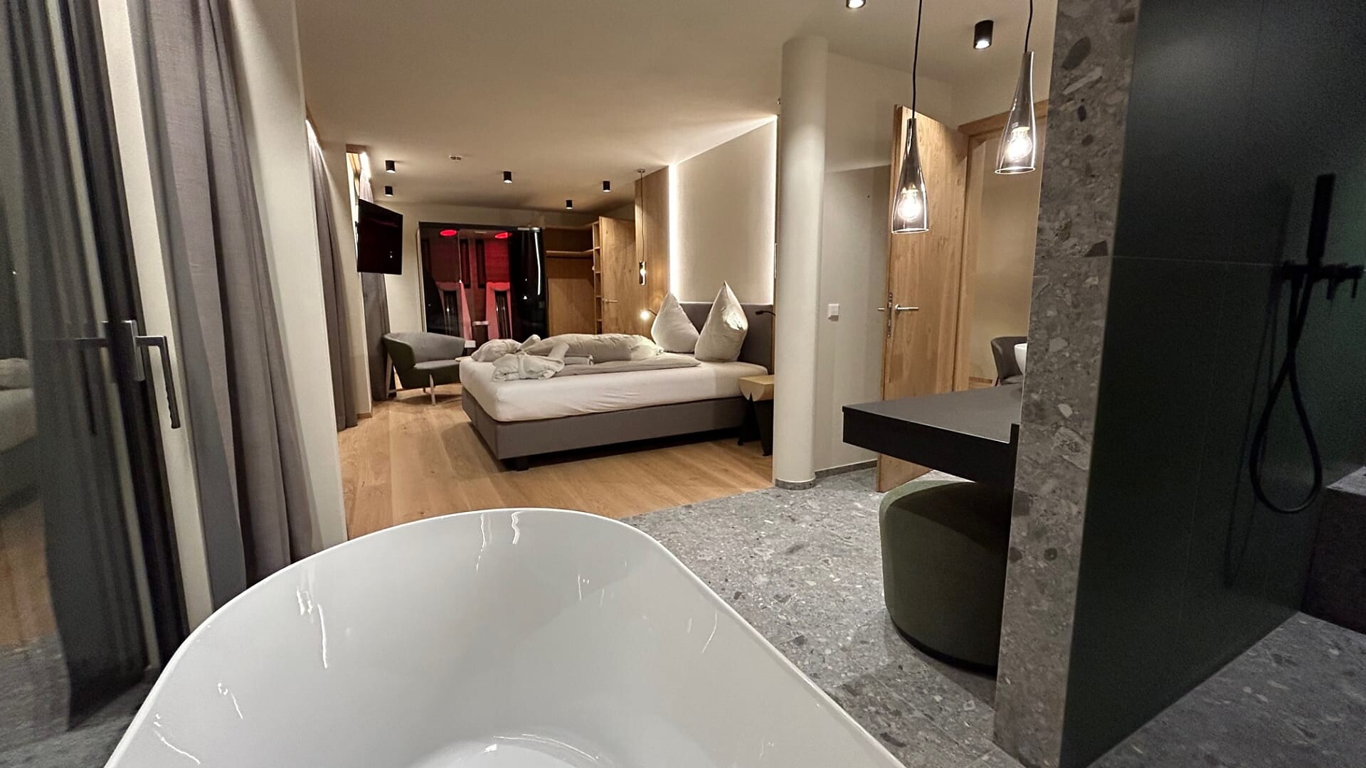 Enjoy the quiet panorama studio with 45 sqm sun terrace and exclusive infrared sauna on the 3rd floor.