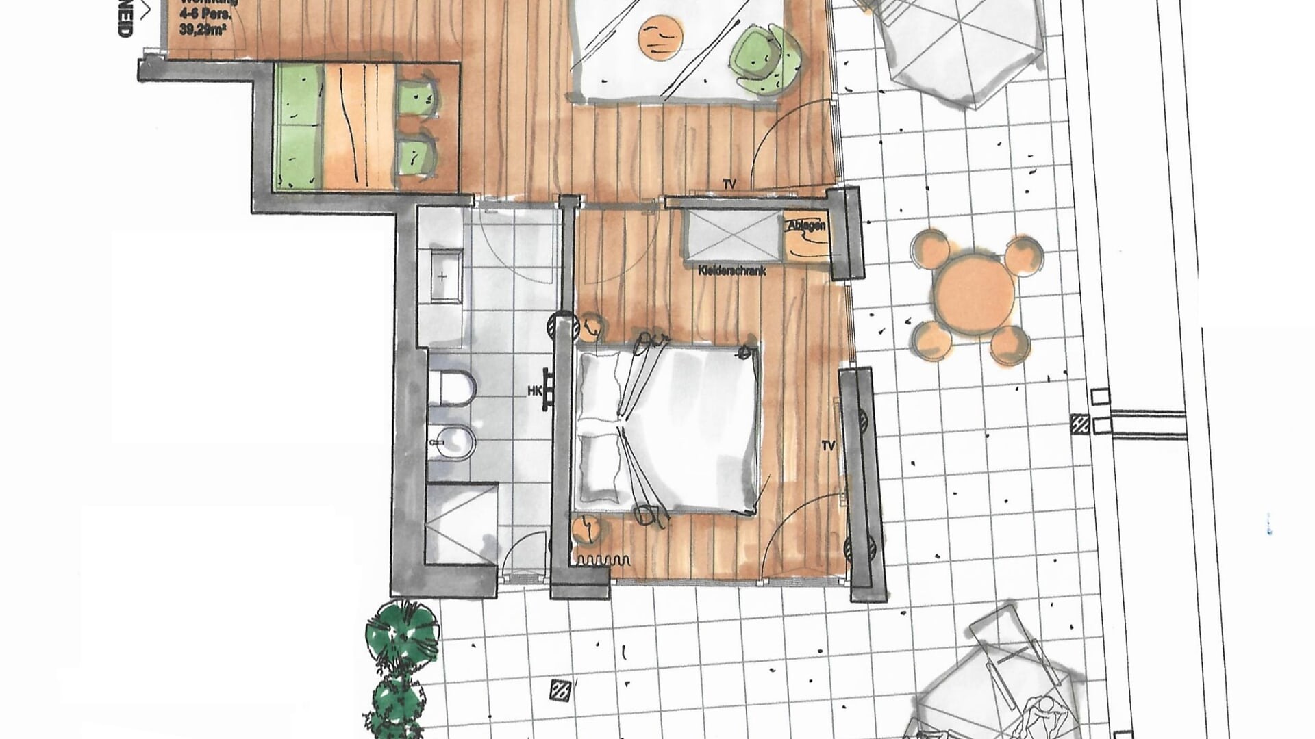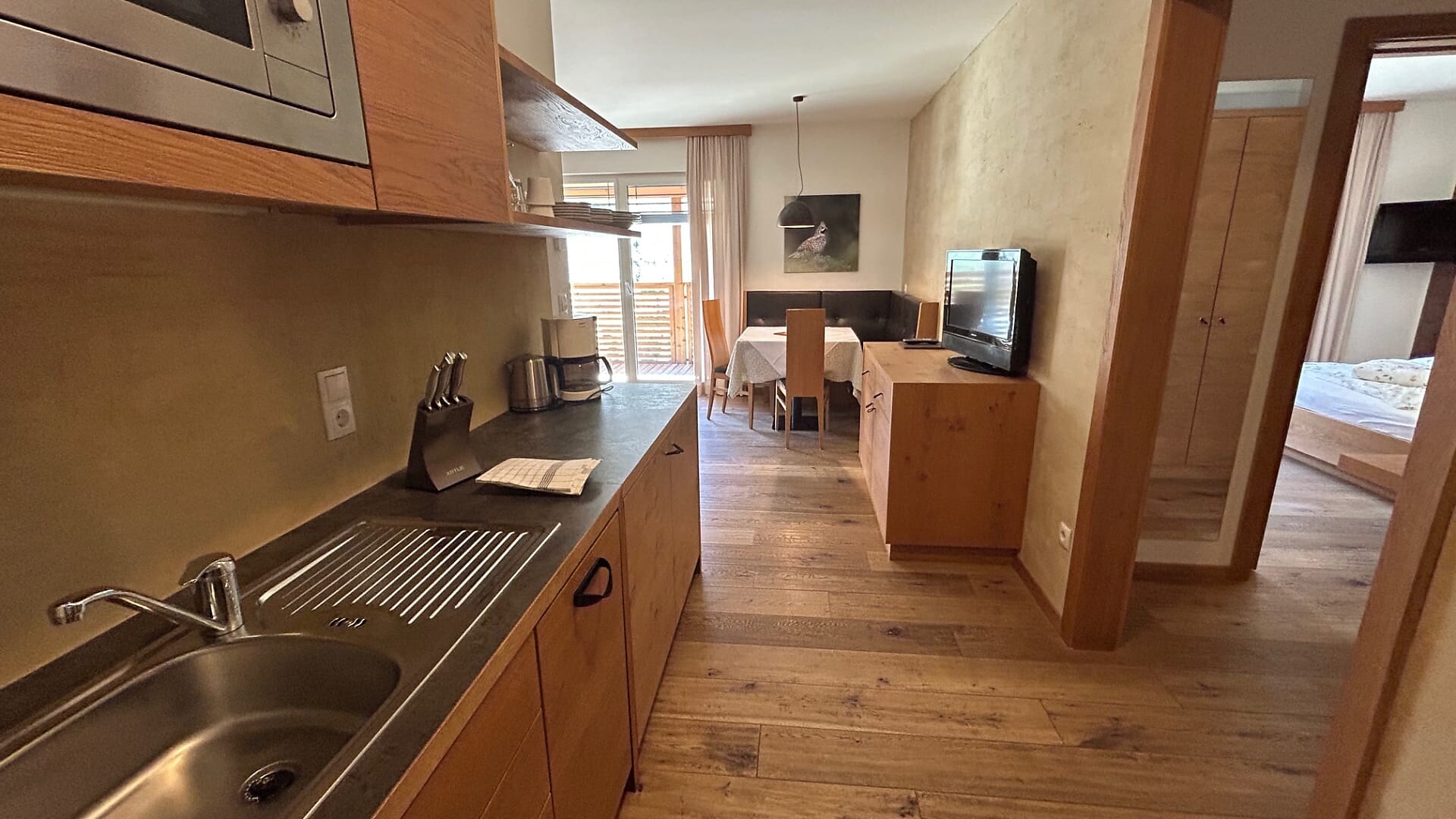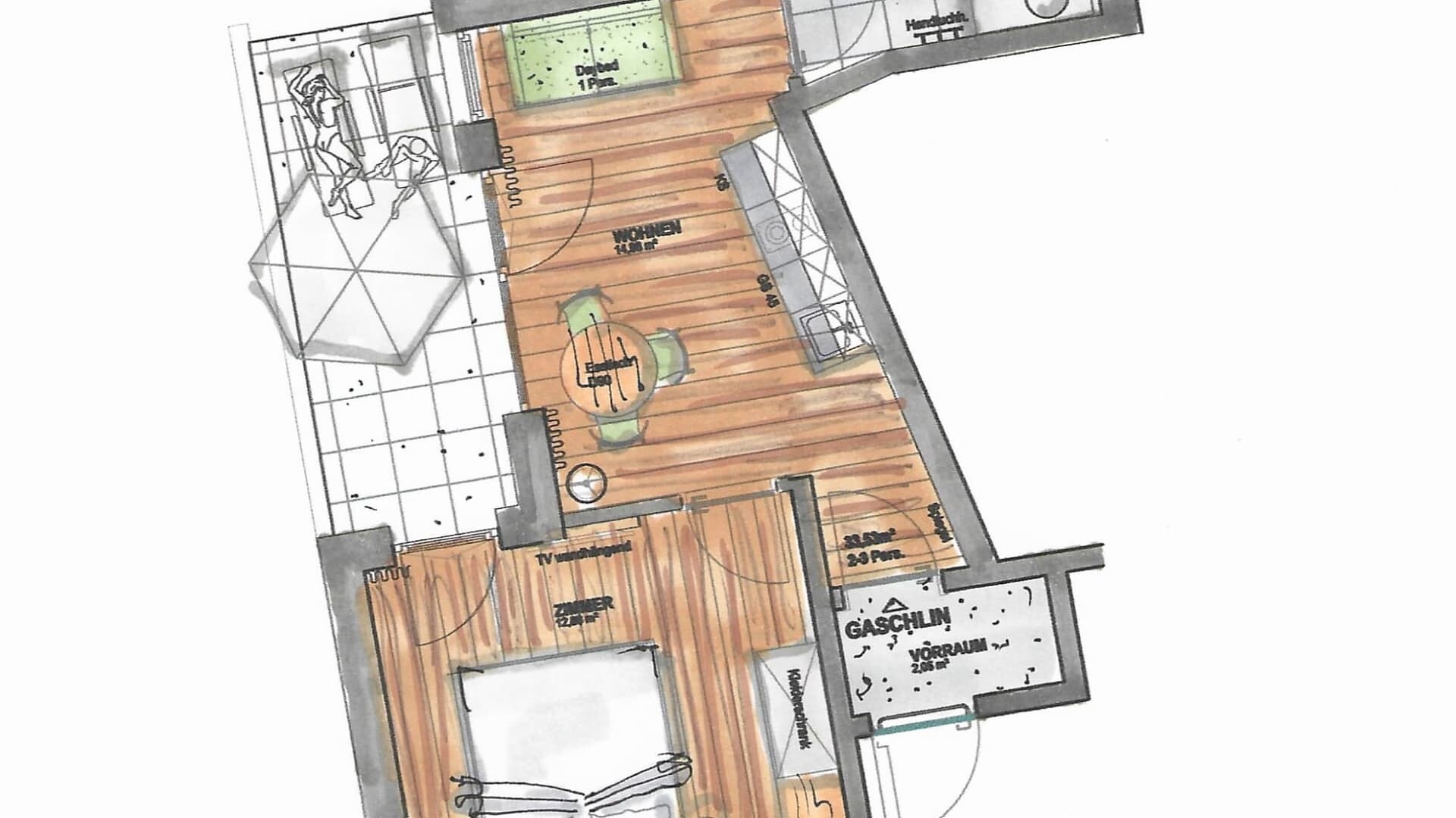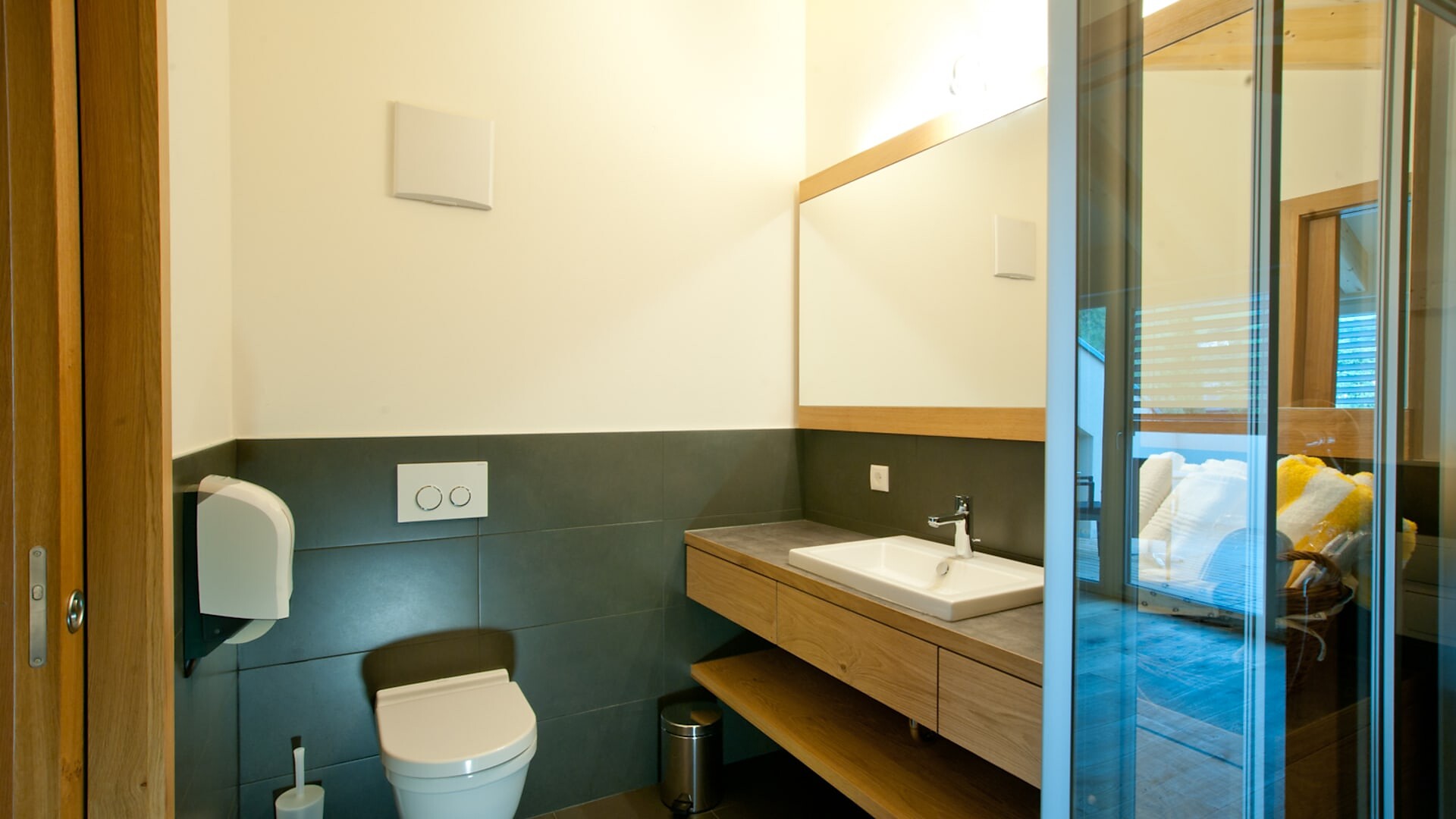 Enjoy the quiet panorama studio with 45 sqm sun terrace and exclusive infrared sauna on the 3rd floor.