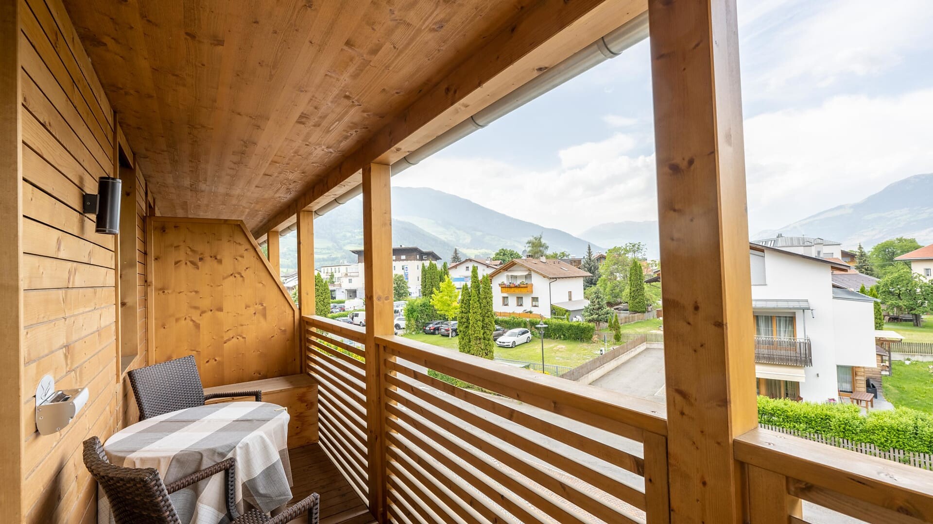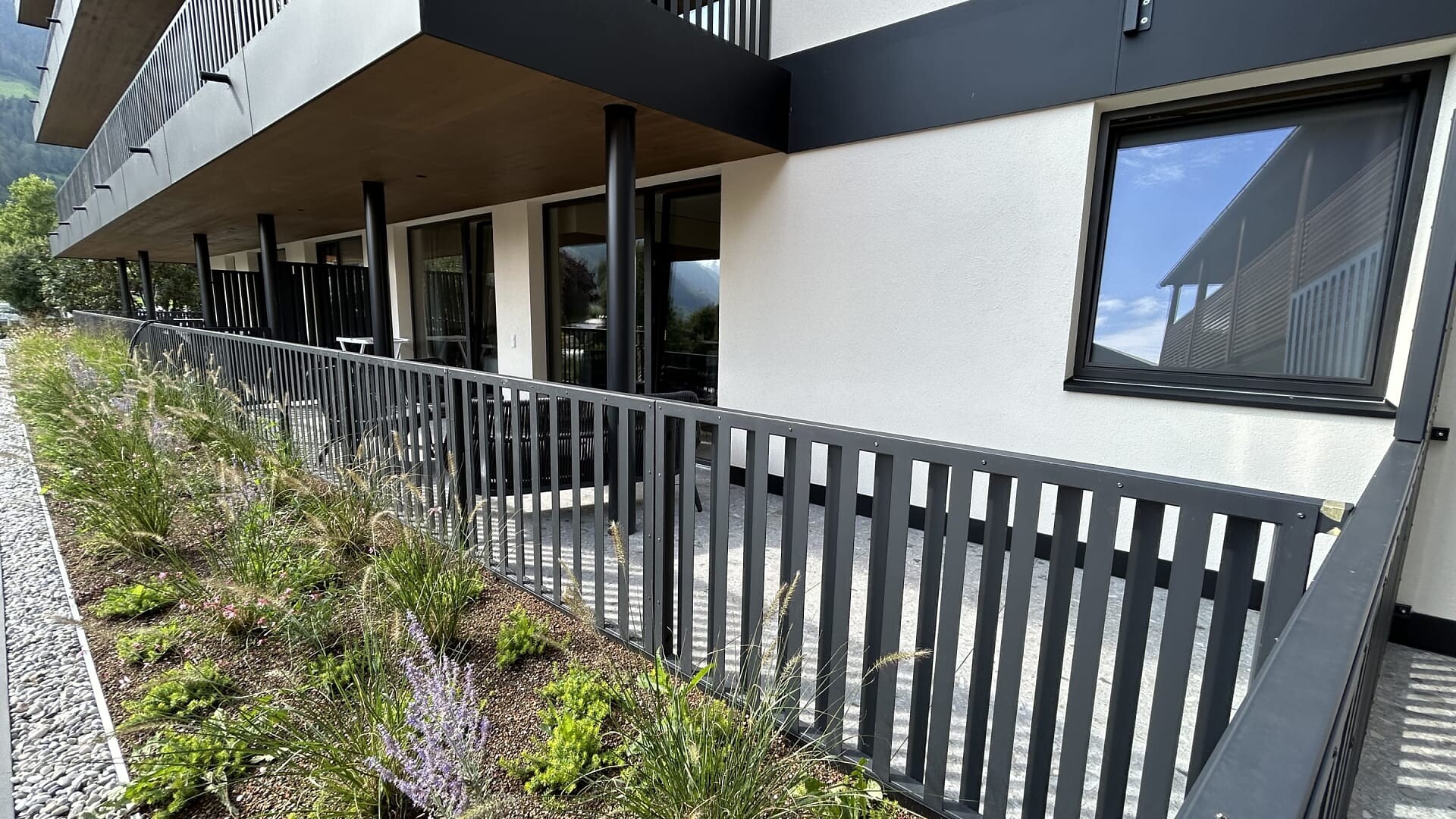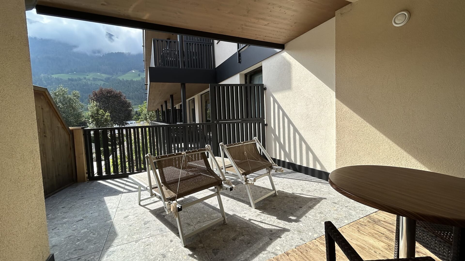 Large balcony terrace facing south with partner infrared sauna