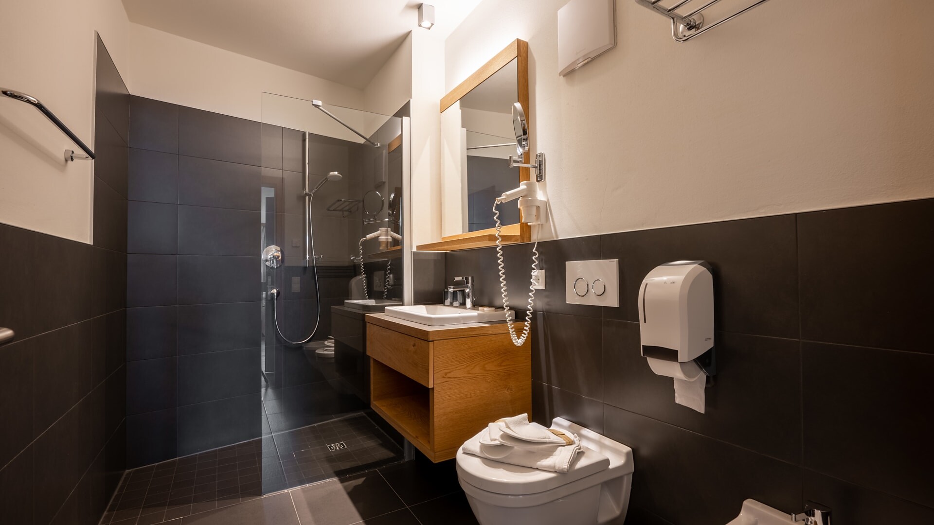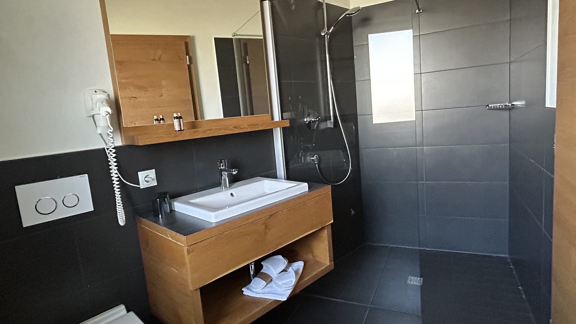 high-quality toiletries, make-up mirror and hairdryer