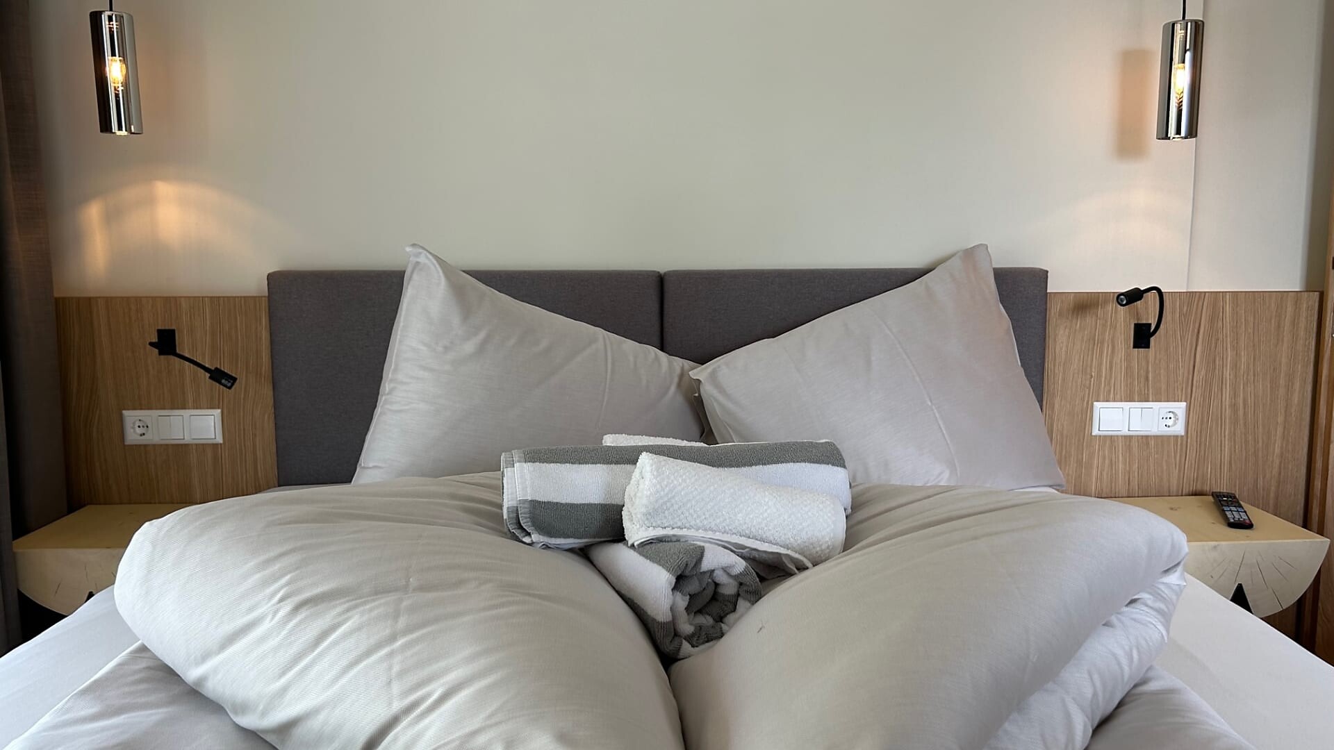 cosy double bed and view through the panorama windows