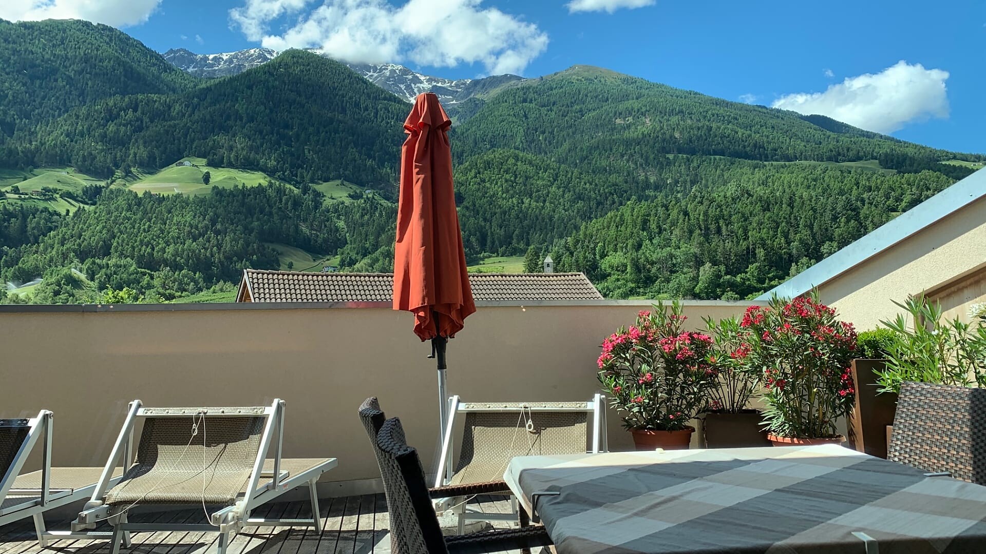 Outdoor furniture with panoramic view of the mountains