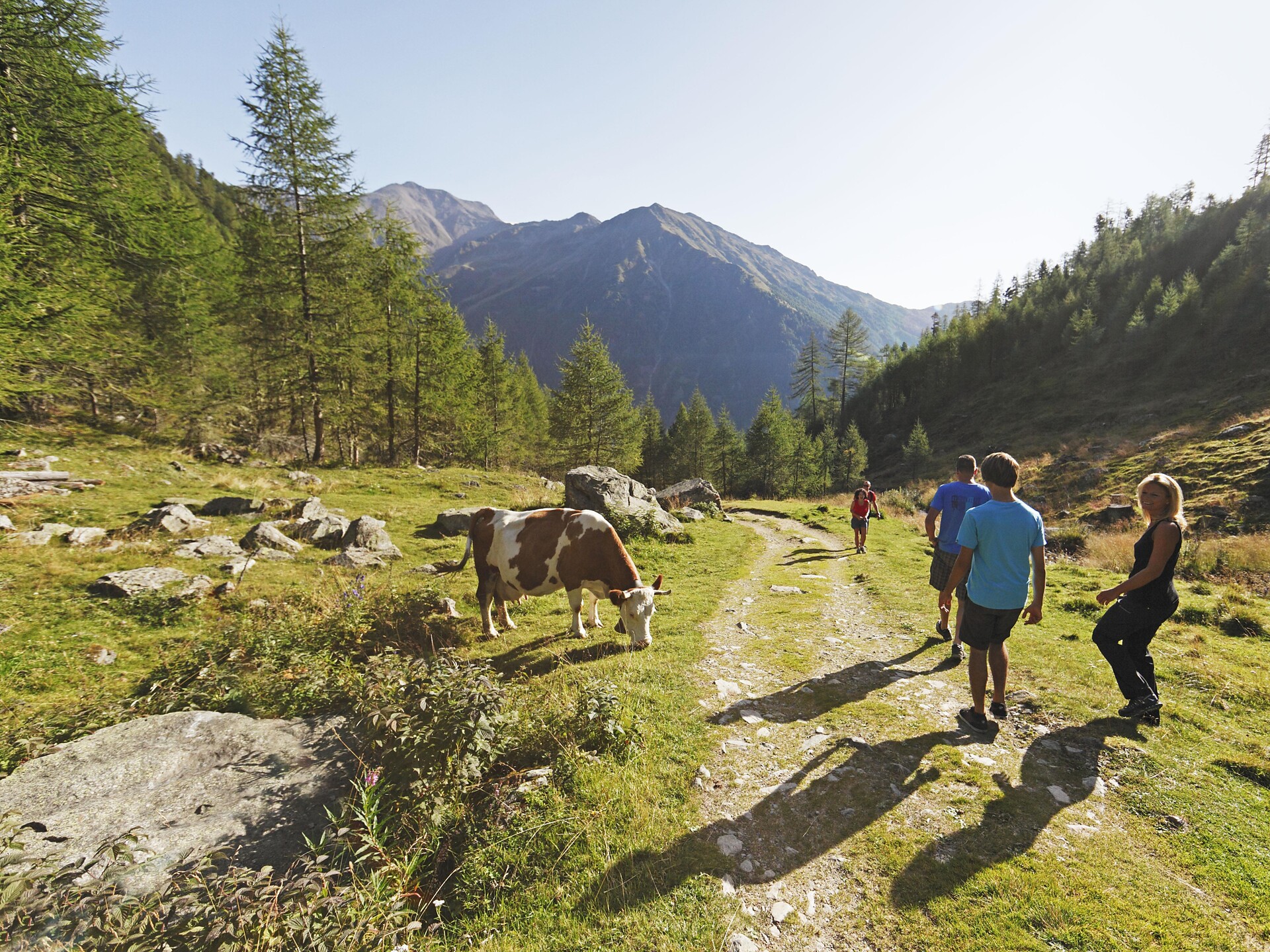 The circular hike starts from the hiking starting point in Unser Frau in the direction of Mastaun Alm. After an ascent of around 2.5 hours, you reach the Mastaunpichele with its summit cross (2,285 metres above sea level). From the summit cross, you can not only see the snow fields of the Niederjochferner and Marzellferner in all their splendour, but also the Vernagt reservoir sparkling turquoise blue as you look down into the valley. The descent is via the Lafetz Alm back to the starting point.
