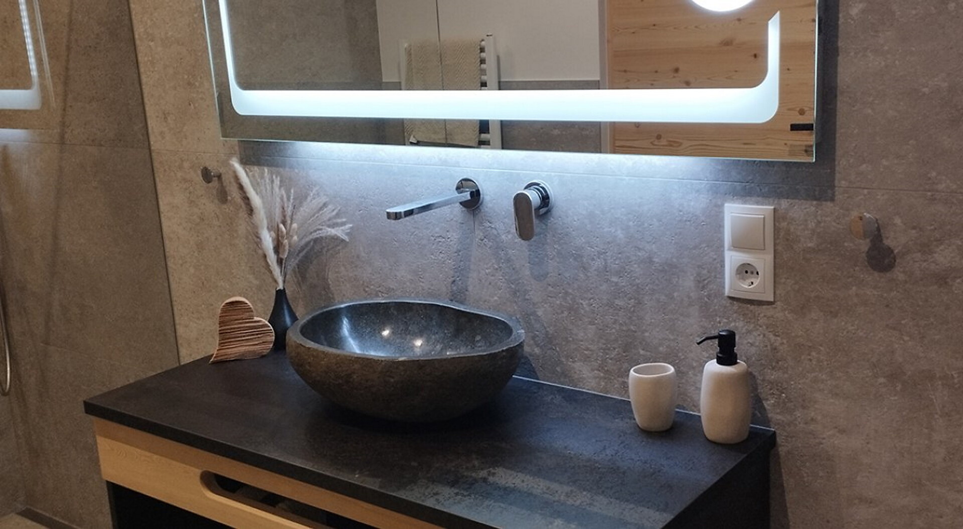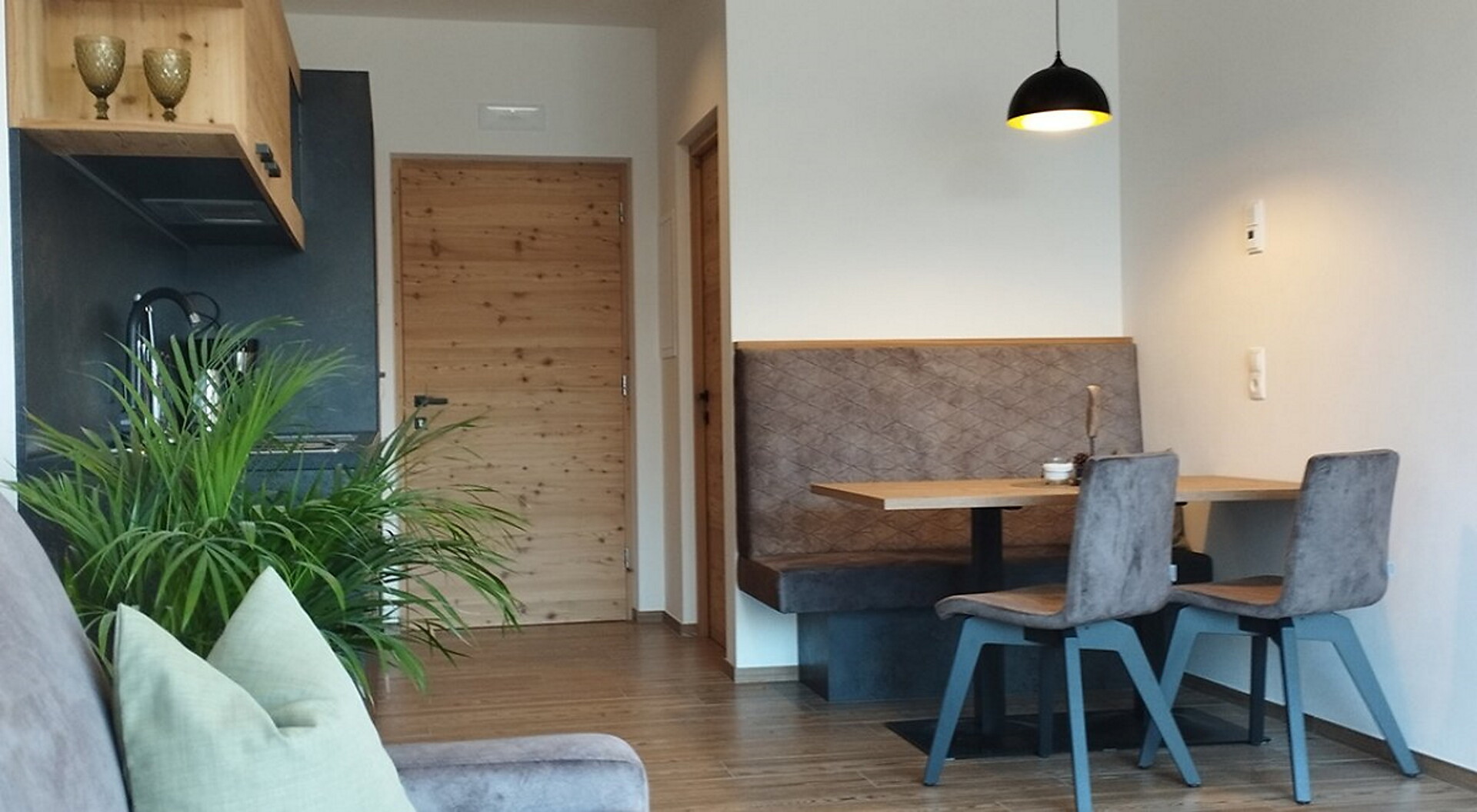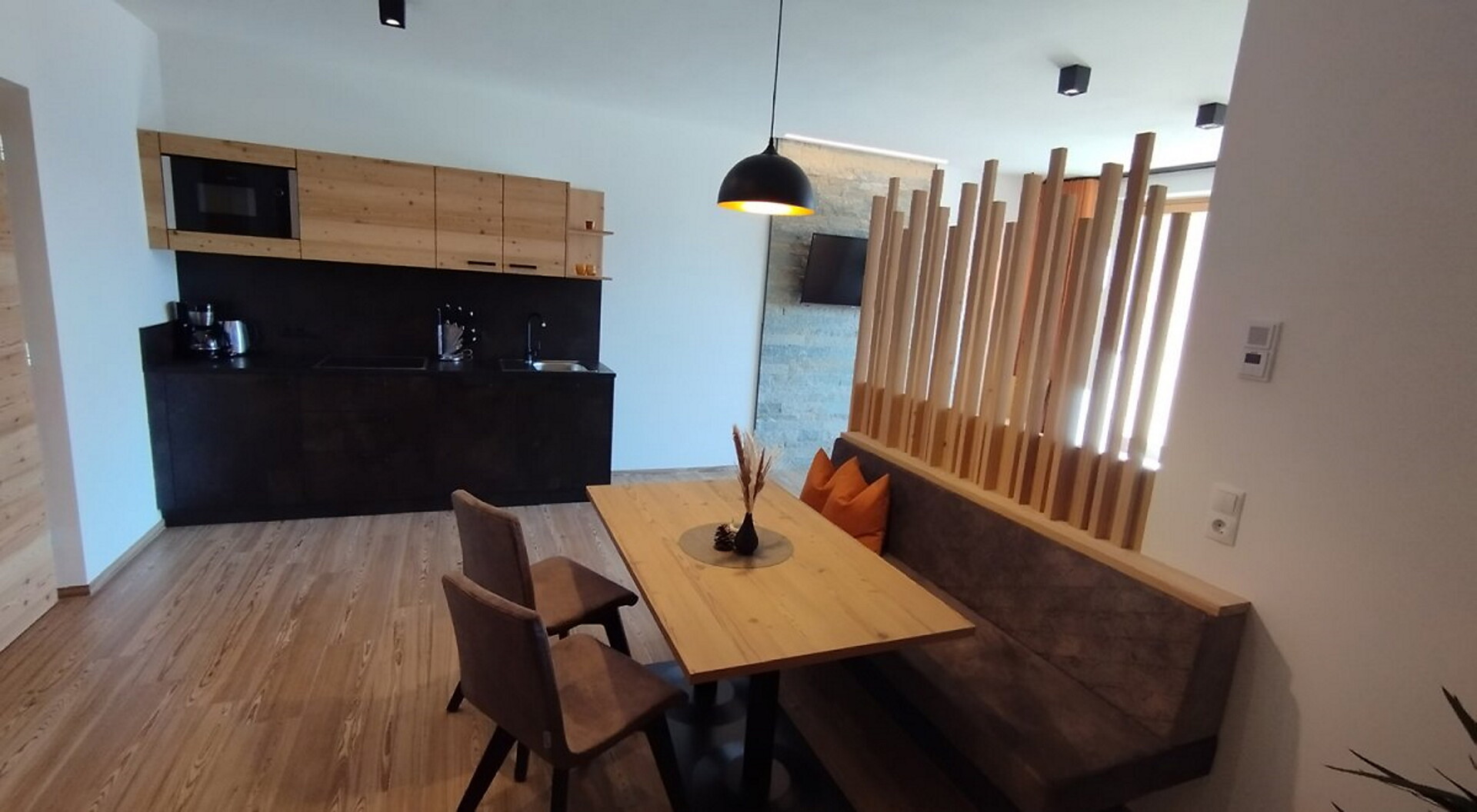 Elegantly and comfortably furnished, our unique Alpine-style lodges convey a pure connection to nature and a cosy, homey feeling. Charming rooms, characterised by loving wooden details, provide a pleasant holiday flair. A fully equipped kitchen rounds off your stay perfectly. As an absolute highlight, our guests enjoy their own small private terrace in their lodge, covered and adjacent to a separate sunbathing lawn.