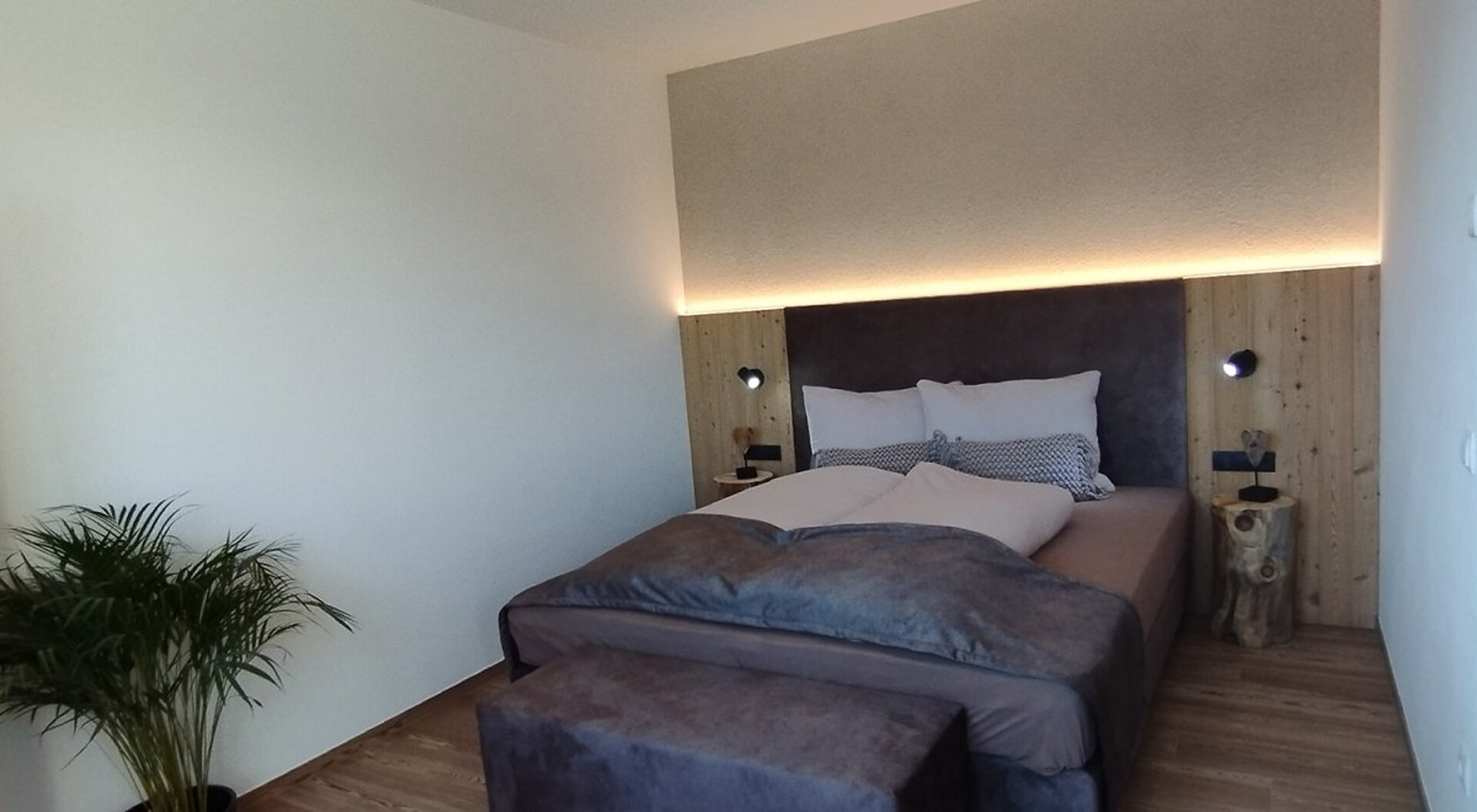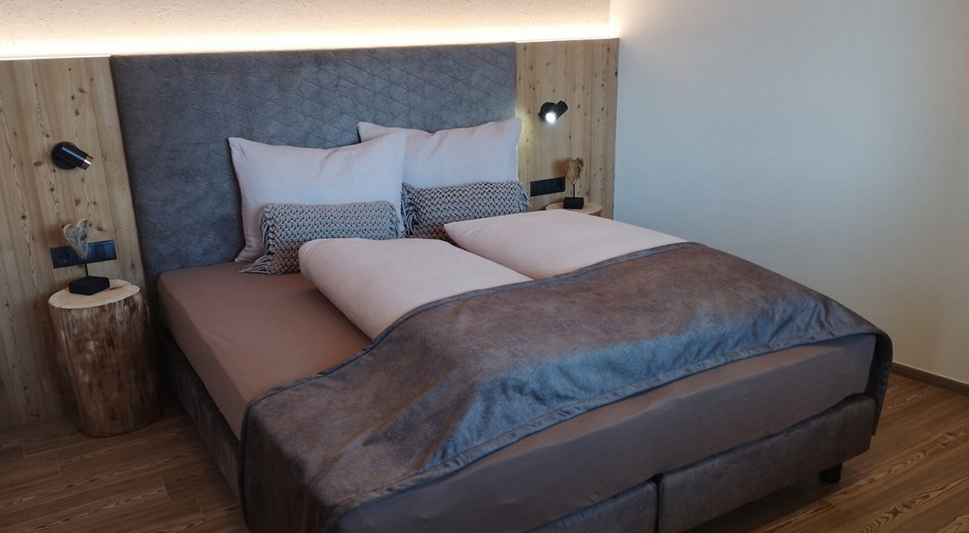 Inspired by the Rhaeto-Romanic "Pa flour" for flower meadow, our new accommodation above the marble village of Laas invites you to an eventful holiday in the Vinschgau Valley. Enthroned on a sunny high plateau, you will spend relaxing moments with panoramic views in our Paflur Lodges, all under the sign of nature, peace and relaxation.