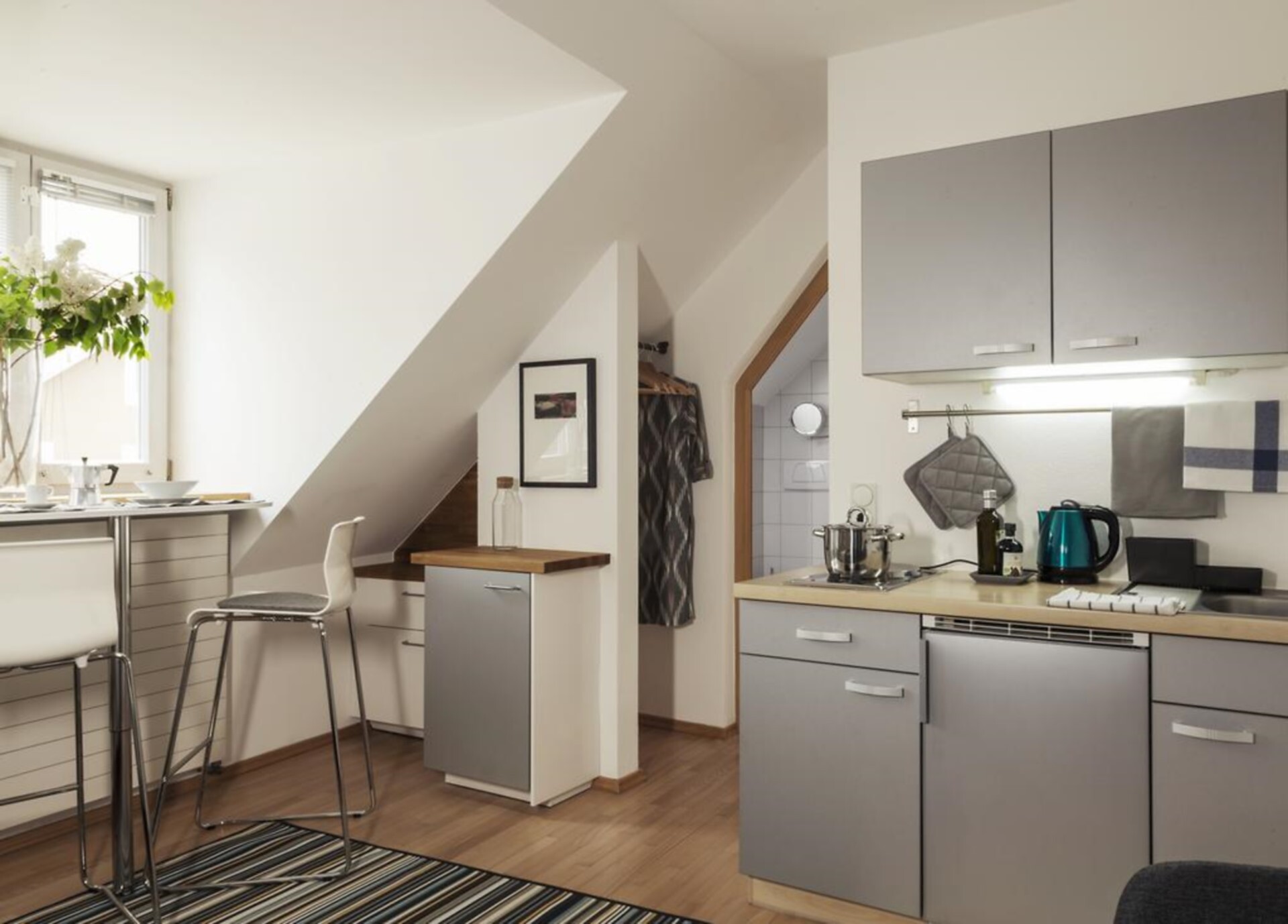 Double bed , Sofa bed, Balcony, Separate living area, Bed linen provided, Non-smoking apartment, Eat-in kitchen, Coffee machine, Dishwasher, Electric cooker, Cutlery provided, Shower/Bath tub, Bidet, Hair dryer, Towels, Washing machine in the apartment, WLAN, Cleaning upon request, Main building