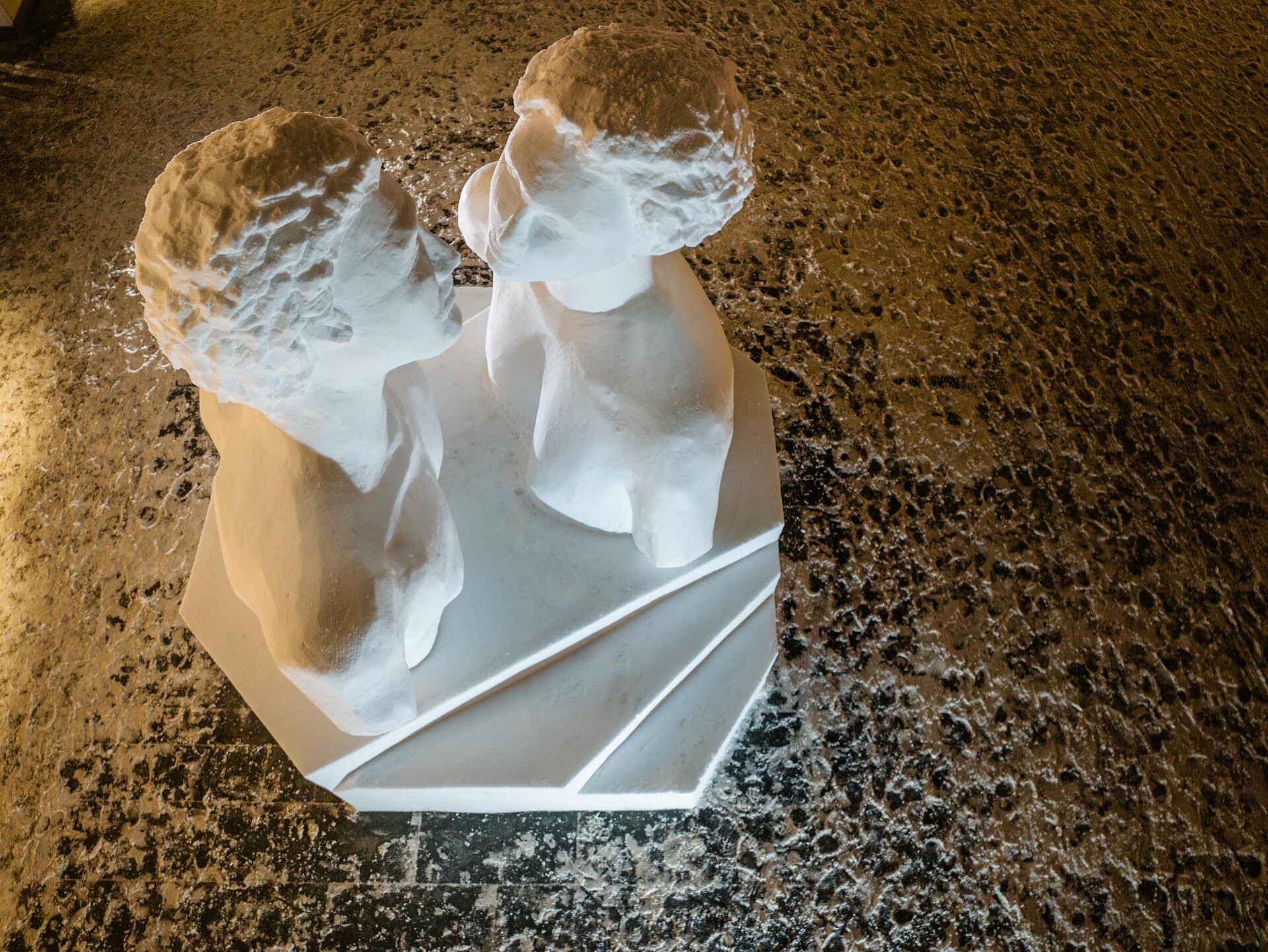 Alleen in de ijzige koude kunnen de sneeuwwitte sculpturen overleven. ’s Avonds worden de beelden feeëriek verlicht, waardoor ze er meteen weer heel anders en bijzonder uitzien.